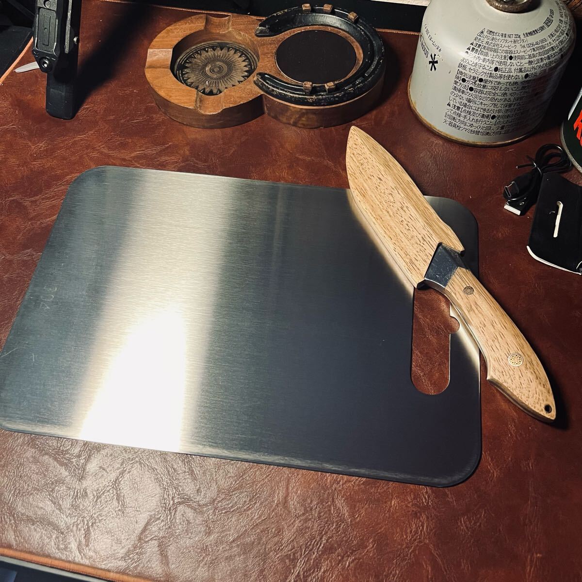 新品 ステンレス製 厚約2mm キャンプ一枚板 調理用 高級まな板 アウトドア 野外登山 20x29cm