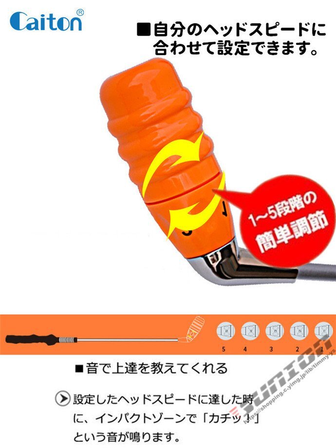 [商品の特徴]●自宅でしっかり練習ができる●音でスイングのレベルアップができるようにインパクトゾーンで「カチ」と音がなります●スイングにあわせて5段階の調整が可能●レベル1or2はある程度クラブがふれると「カチ」音がします●レベル3くらいからきちんとスイングできないとなかなかインパクトの音がでません●音をだす秘訣は、下半身リードのボディターン●繰り返し練習してレベル4or5でも「カチ」っと高快音が出るように頑張りましょう●リアルクラブのように重心距離のあるヘッドがついているのがキモ●ヘッドが外側についているのでフェース面を意識してスイング練習ができます●重心が外側にあるので遠心力で外側に振られるのを修正するトレーニングにもなります■ 商品仕様●サイズ全長725mm / 重量548g●素材シャフト:グラスファイバー先端:プラスティック