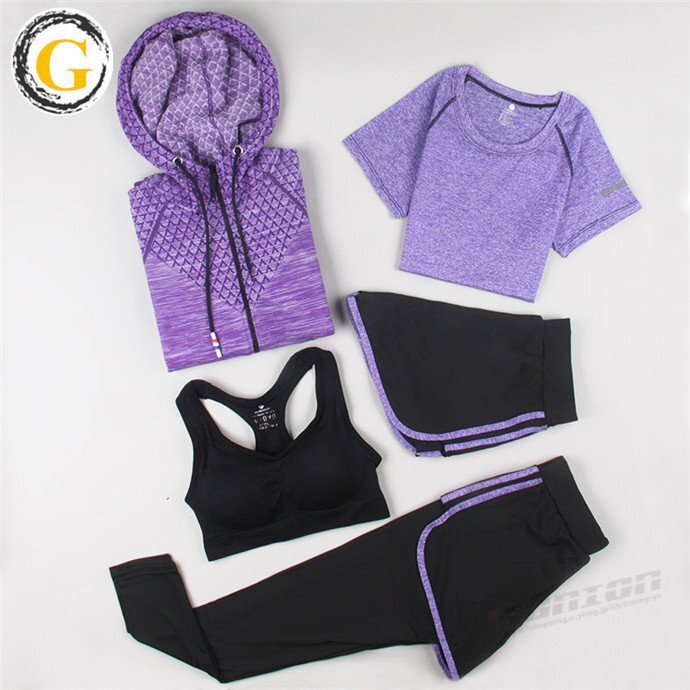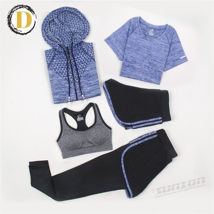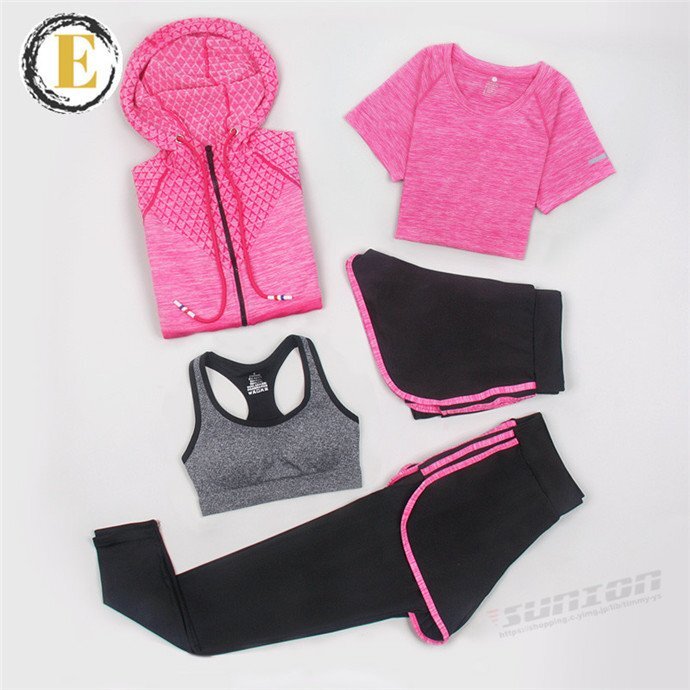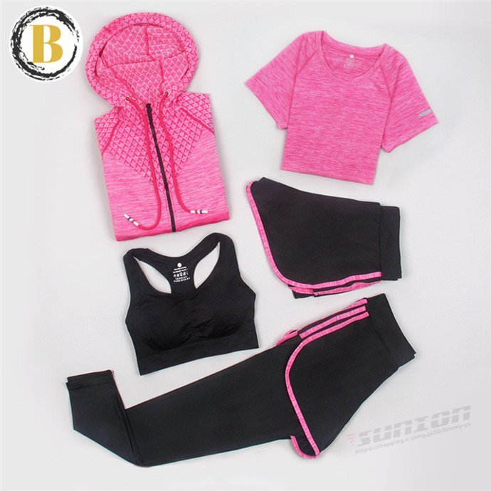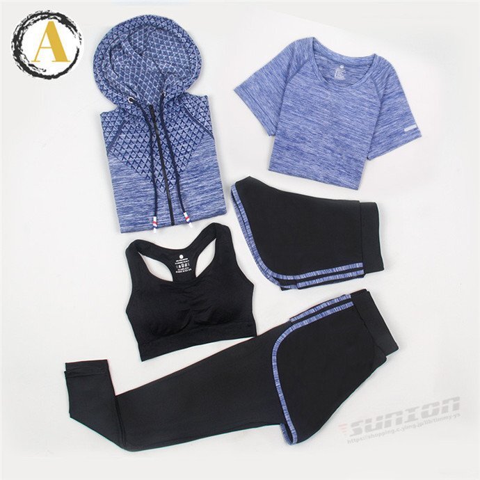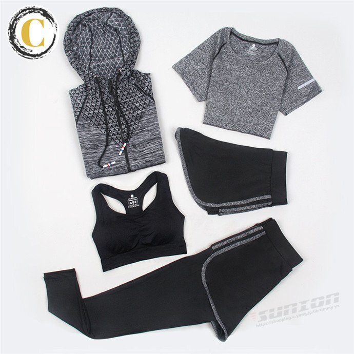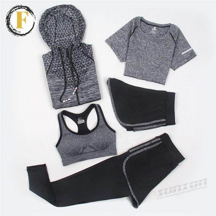 スポーツウェア 5点セット トレーニングウェア レディース 上下セット ヨガウェア パンツ レギンス ブラ Tシャツ 新作 ヨガウ