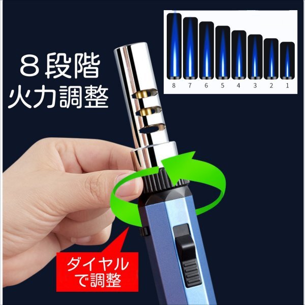 ダイヤルを回転させるだけで8段階に火力調整可能。360°どの角度でも使用可能