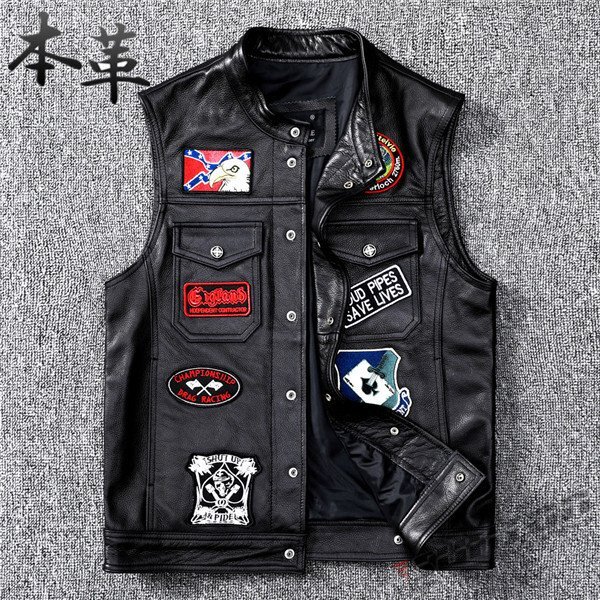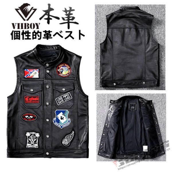 レザーベスト メンズ ベスト 本革 牛革 高級レザー ジレベスト チョッキ バイク用ベスト 通勤 カジュアル フォーマル 大きいサ