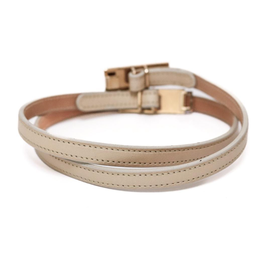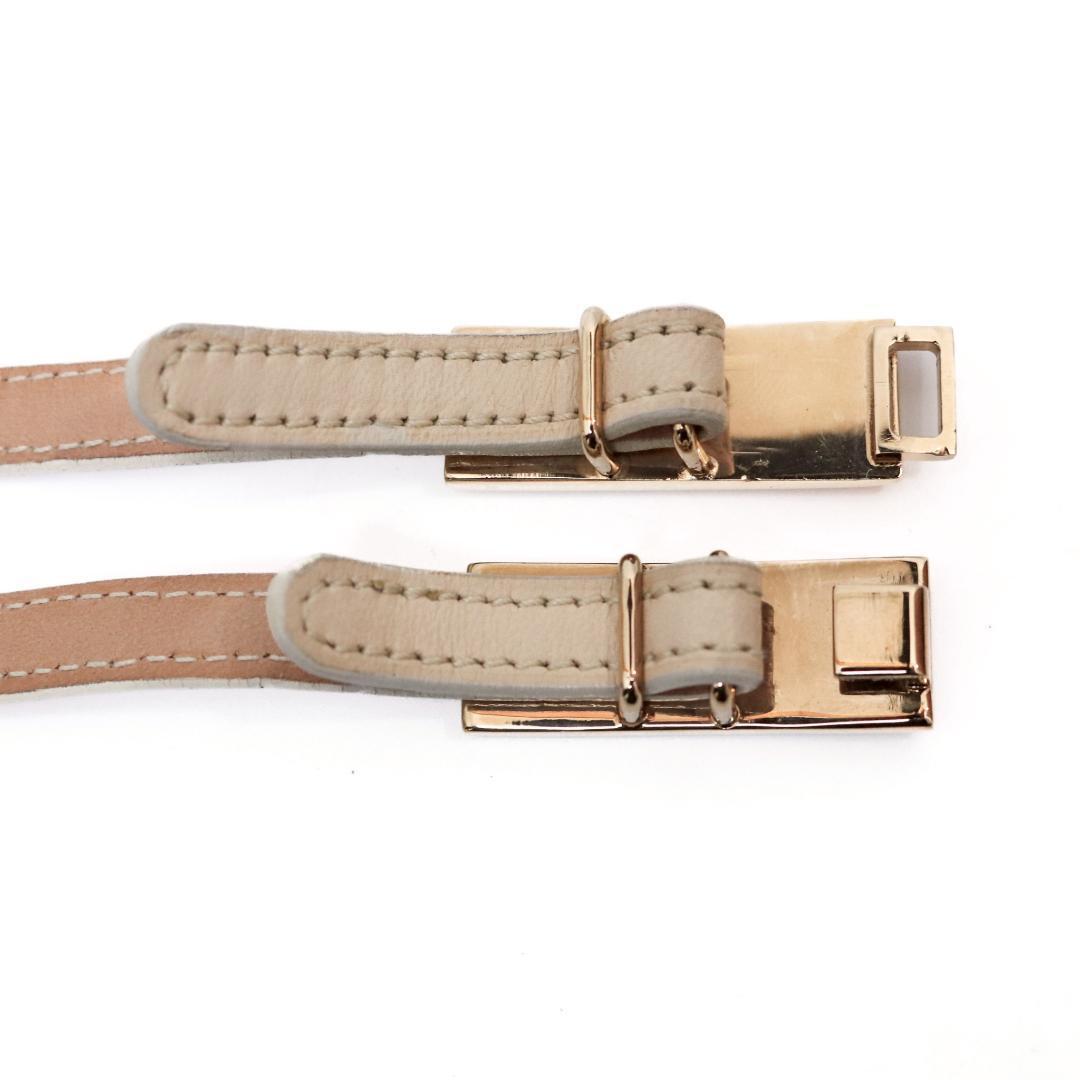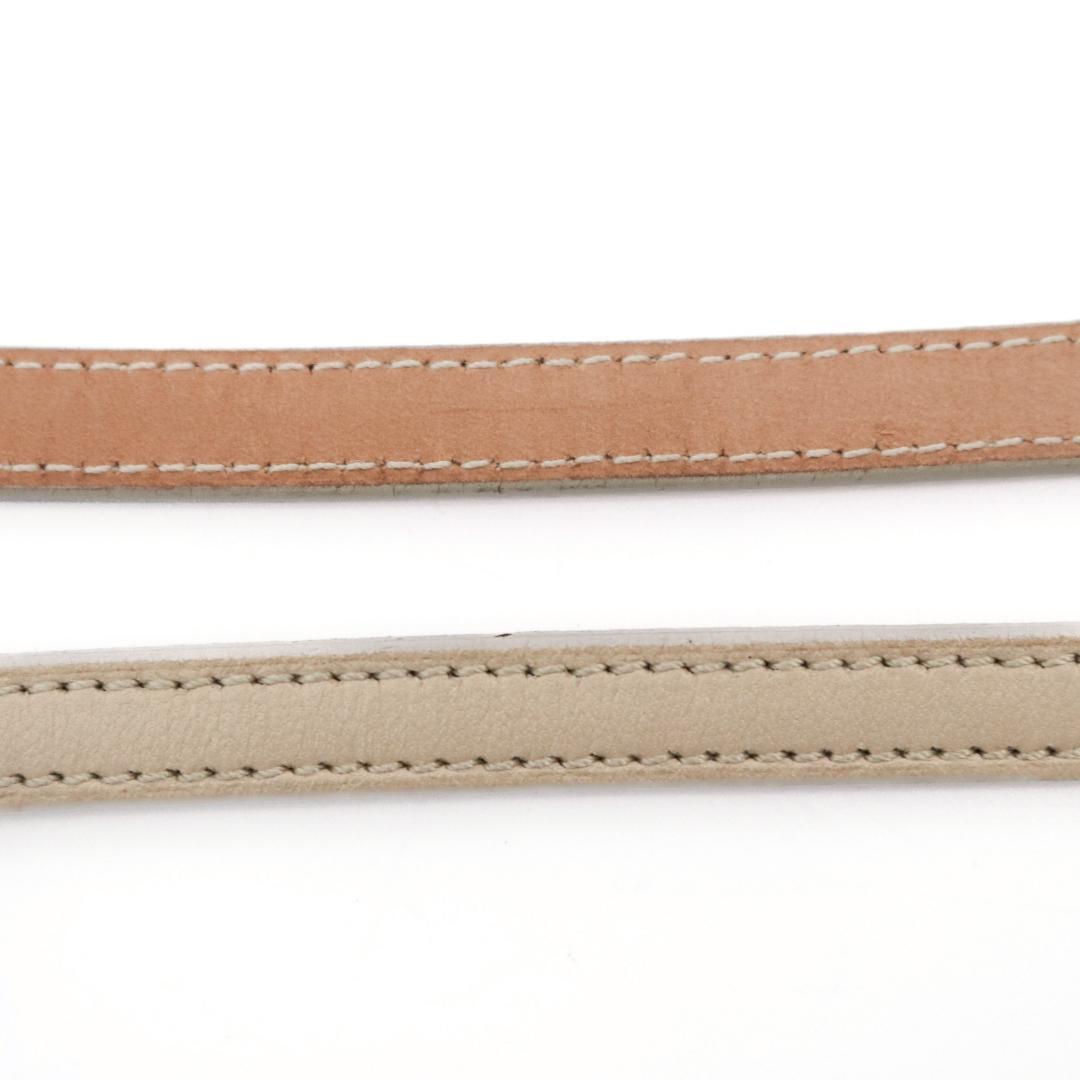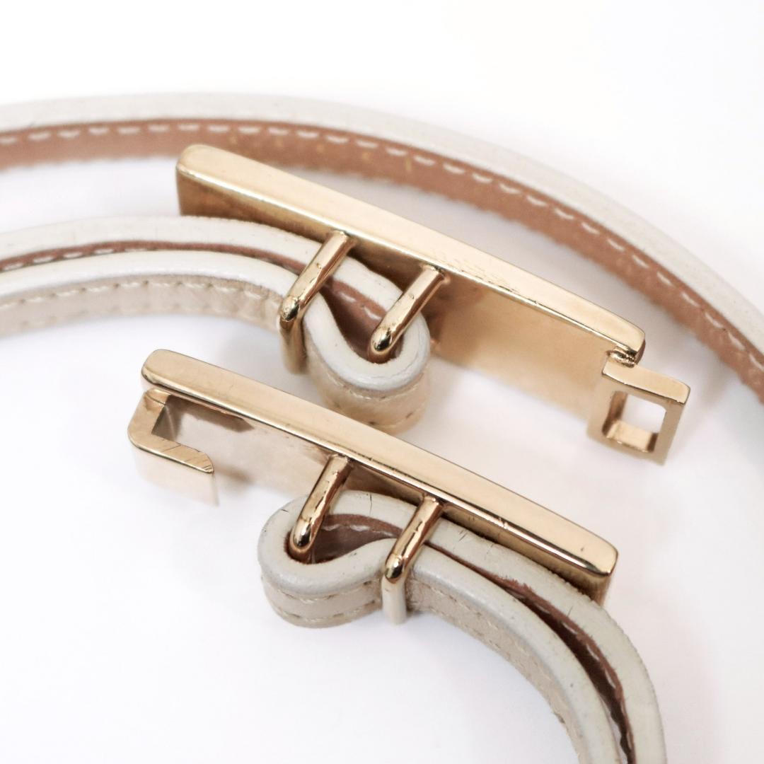 上品なピンクベージュ×ゴールドの組み合わせが、さりげなく高級感を演出します。普段のコーデに一点プラスするだけで雰囲気が変わる、使い勝手の良いベルトです。