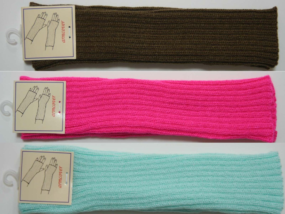 送料無料◆3色組◆アームウォーマー◆親指穴付き◆無地◆リブ編み◆あったかアームカバー(ブラウン&ショッキングピンク&ミントグリーン)