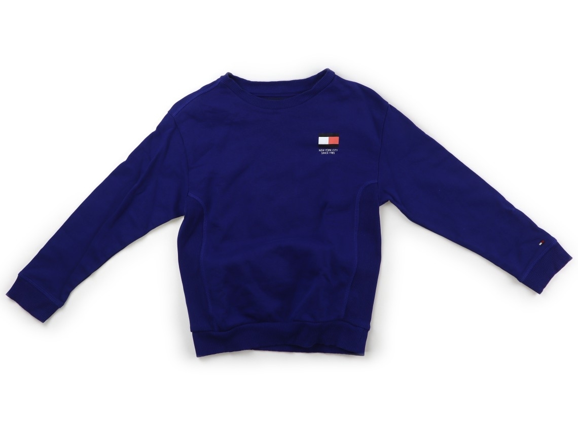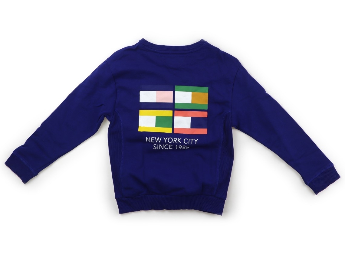 裏毛トレーナー地。実際のサイズ表記は、128。リブにヨレ感あり。いくつかの油シミあり。洗いざらし感があります。