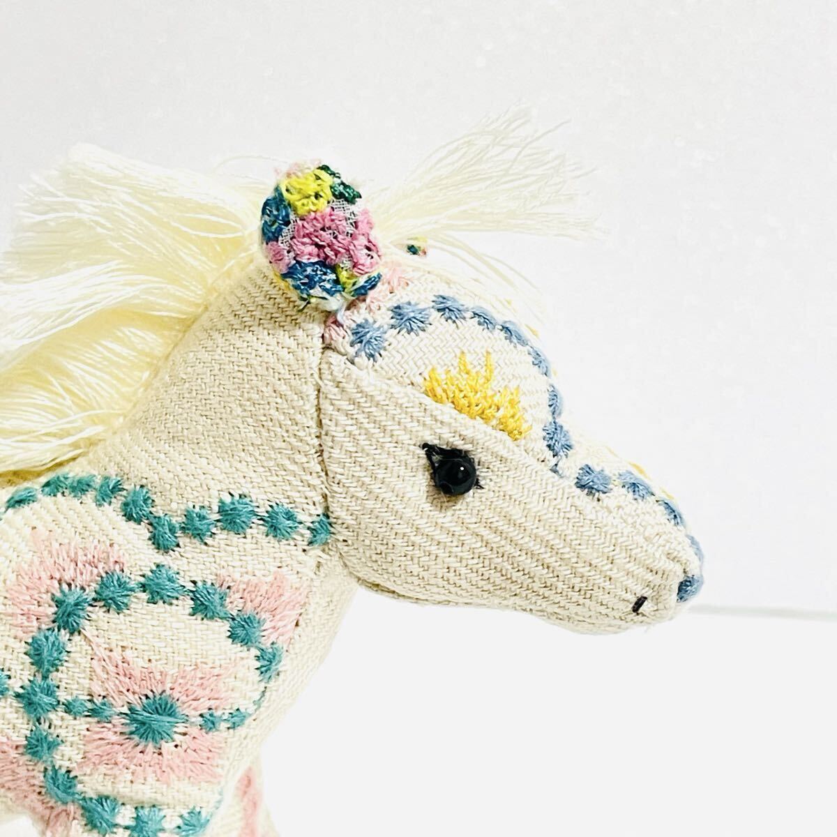 ミナペルホネンのblumen ブルーメンのインテリアファブリックで作った来年の干支 馬のぬいぐるみです。