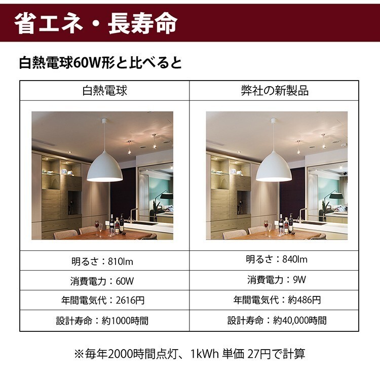 | 消費電力 | 9W (60W形相当) | 入力電圧 | AC100V (50/60Hz) |
