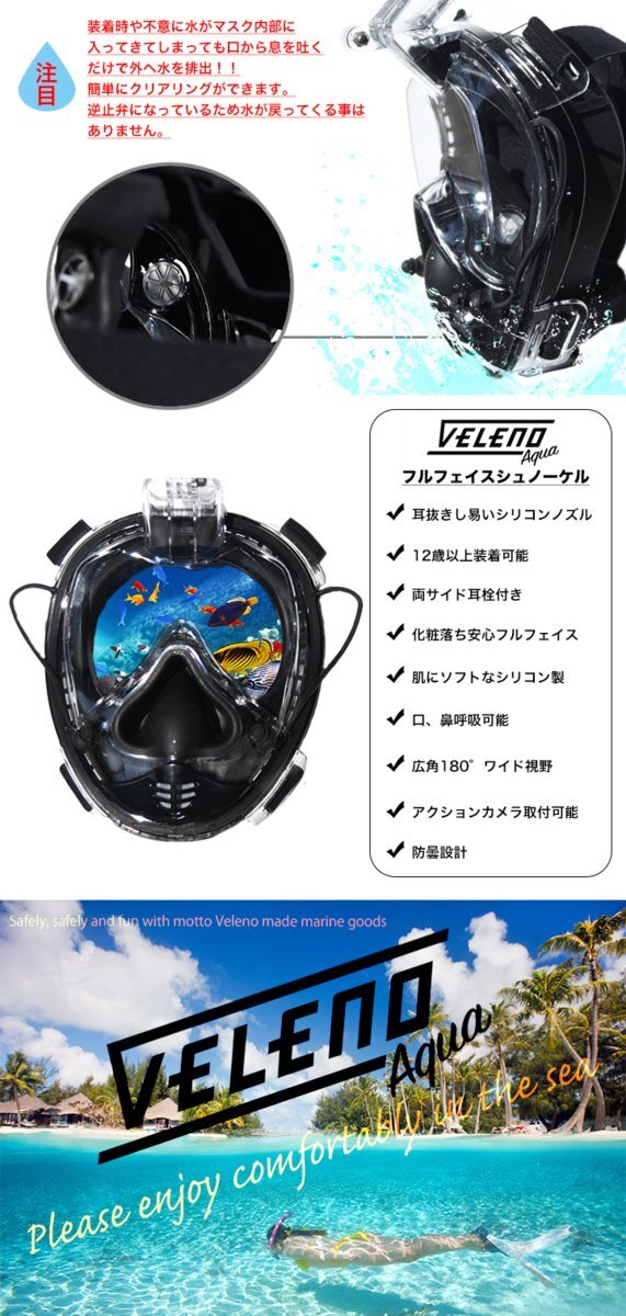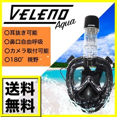 veleno aqua シュノーケルマスク スノーケル フルフェイス 180°広角視野 防曇 ダイビング アクションカメラ取り付け可能 送料無料