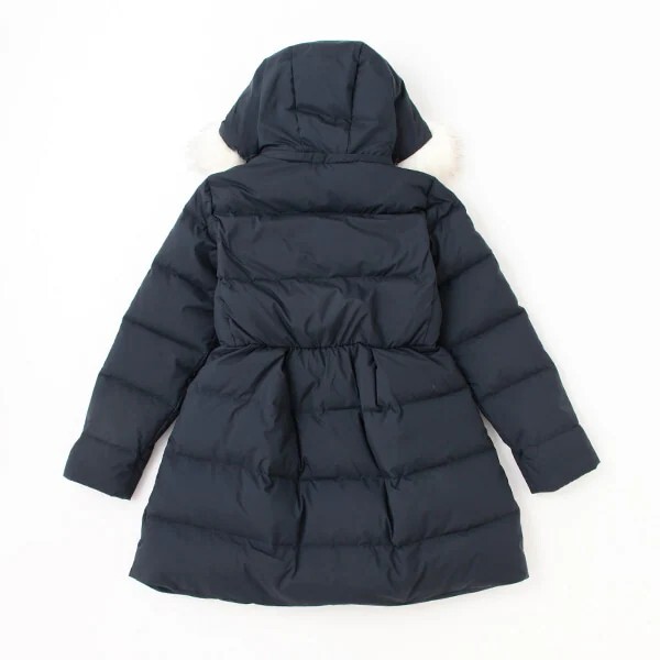 大人っぽさを印象づけるロング丈のダウンジャケット。ボリューム感がありそうで、実は軽くあたたかな着心地が特徴です。ウエストを絞ったメリハリのあるシルエットにより、フィットの良い着心地に。フェイクファーつきのフードはお好みでつけ外し可能です。【透け感】透けない【生地の厚さ】普通【伸縮性】なし【裏地】あり【ポケット】あり