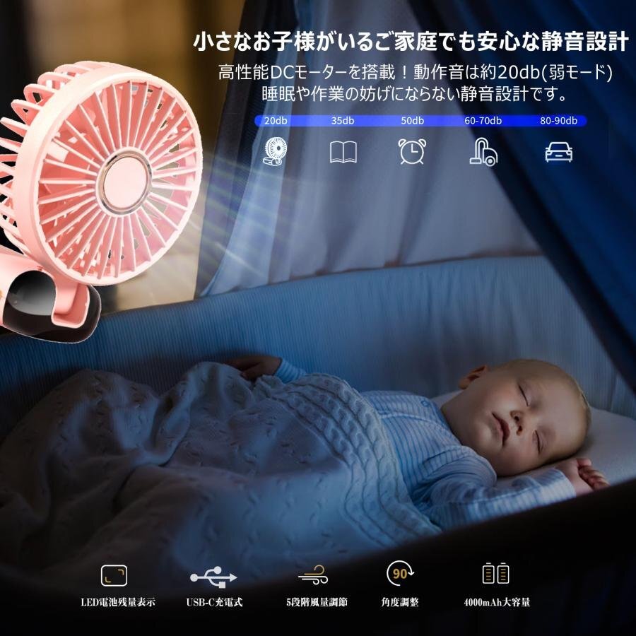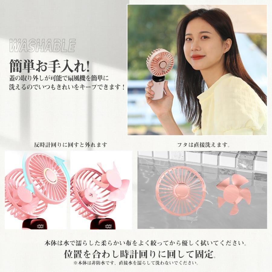 白 充電式ハンディファン 大容量 手持ち 携帯扇風機 首掛け 5段階風量調整 ミニ 静音 小型 USB 卓上 涼しい 夏 暑さ対策 熱中症 長時間