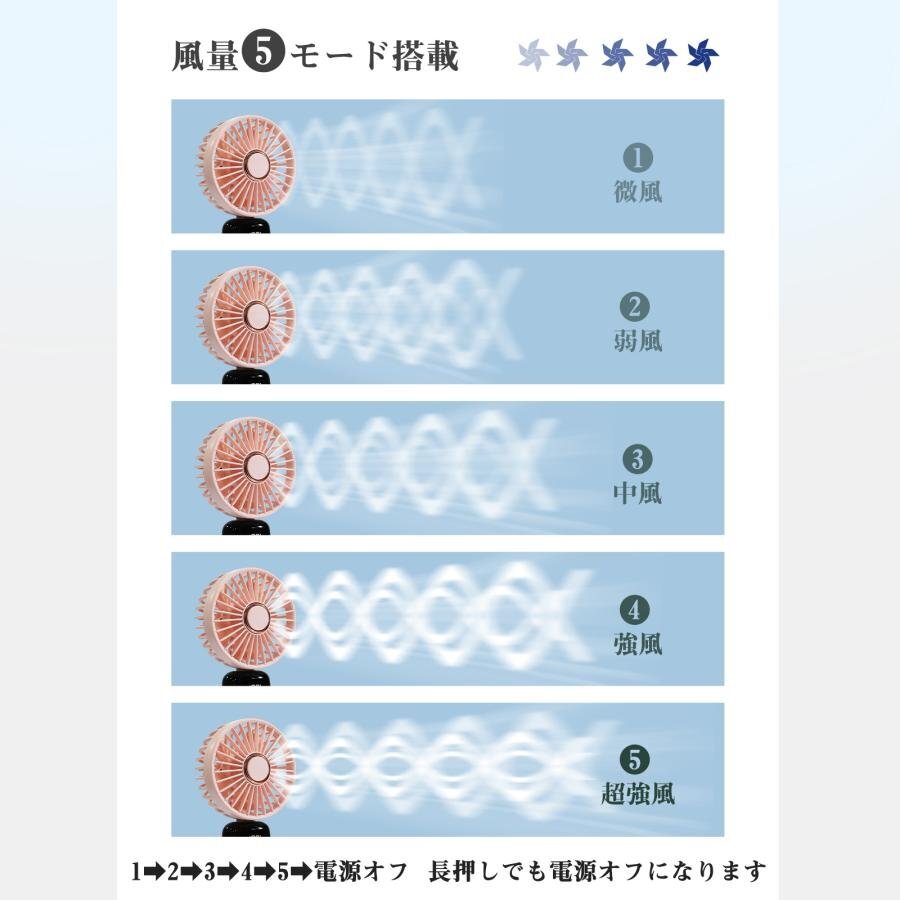 ◎風量調節は5モード搭載!微風-弱風-中風-強風-オートループ(微風~強風モードを繰り返す)とお好きな風量で楽しめます!
