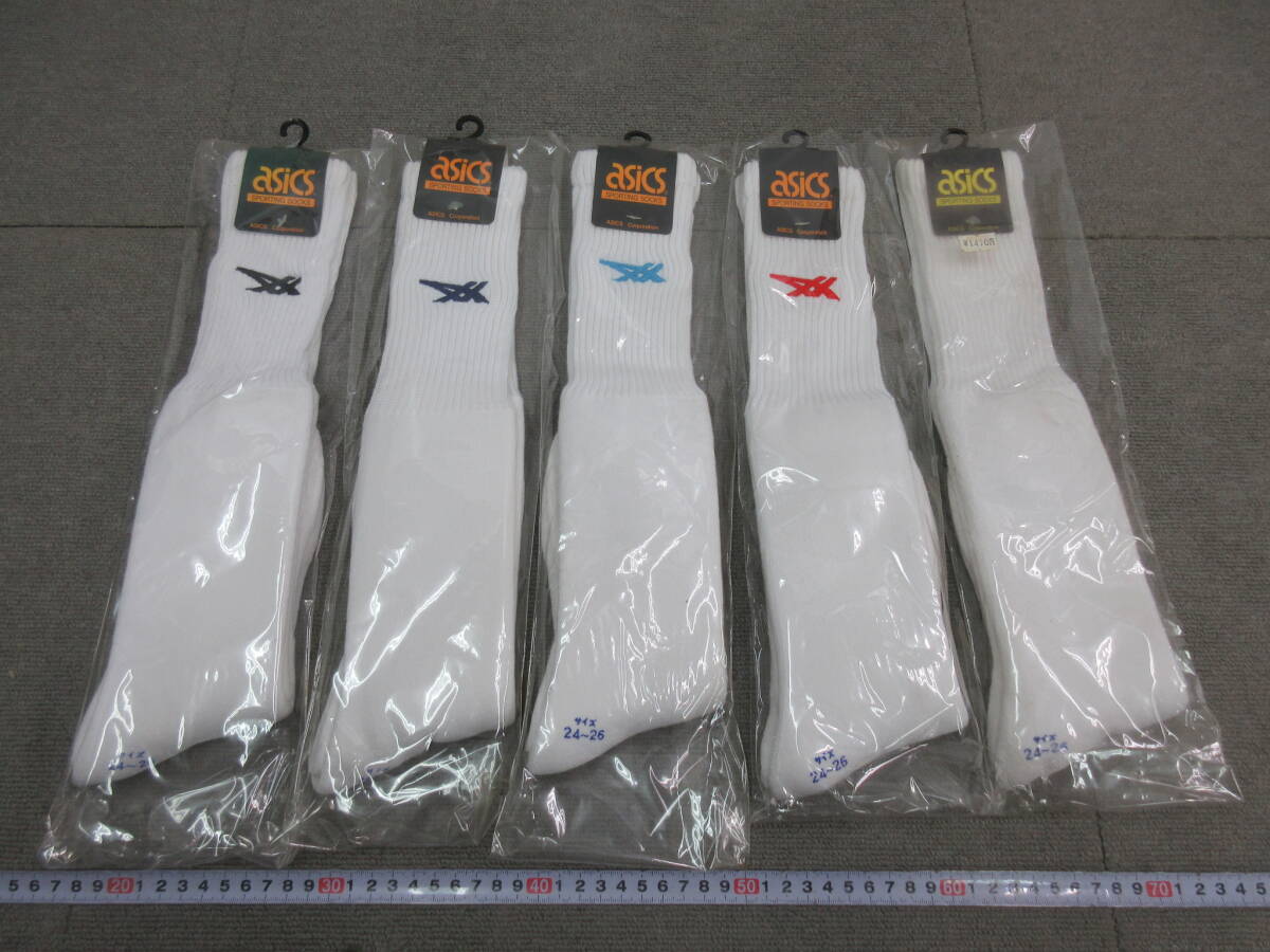M【12-10】●23 スポーツ店在庫品 asics アシックス スポーティングソックス ニューハイソックス 25cm(24~26cm) 5点まとめて 未使用【9-8】