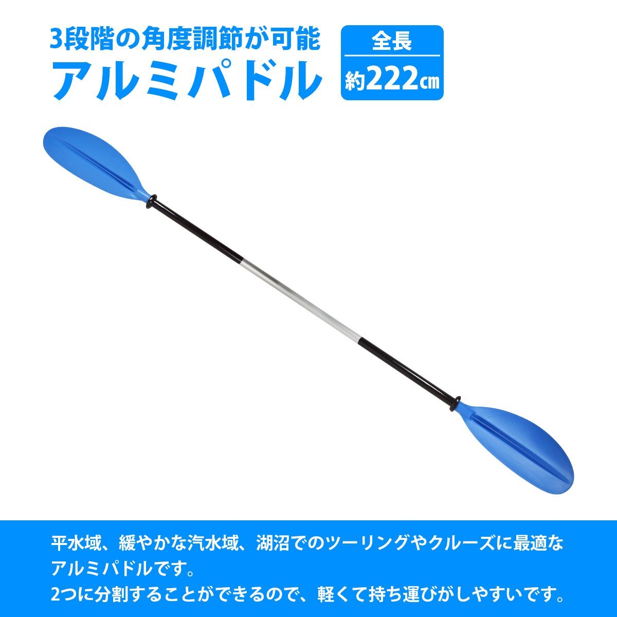 【送料無料】『全長222cm』3段階の角度調整が可能 カヤック パドル 『青/ブルー』ボート ゴムボート カヌー アルミ製 オール 海 川 湖