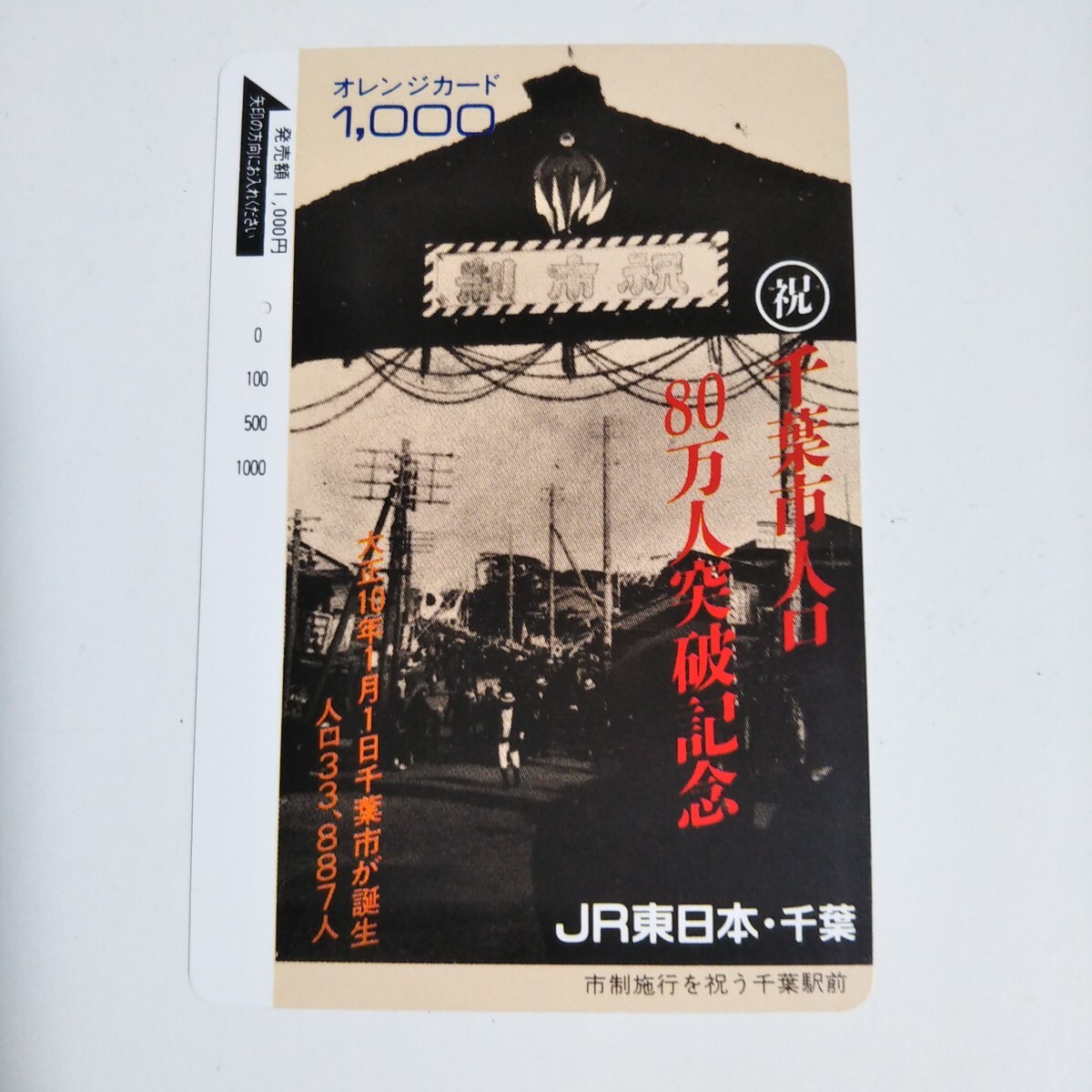 JR東日本・千葉 祝 千葉市人口80万人突破記念 市制施行を祝う千葉駅前 オレンジカード 使用済み 1穴