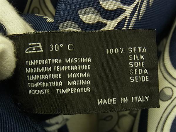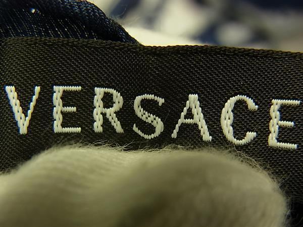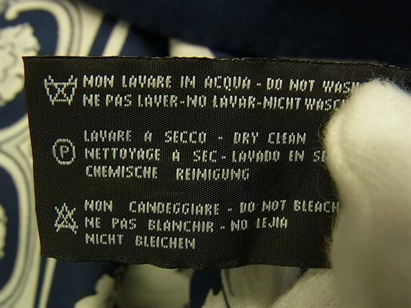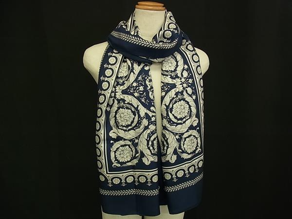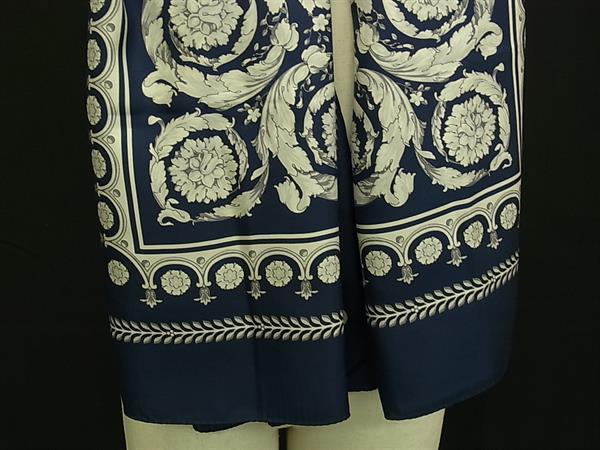 1円 ■美品■ VERSACE ヴェルサーチ シルク100% 総柄 スカーフ ストール レディース ネイビー系 FN9614