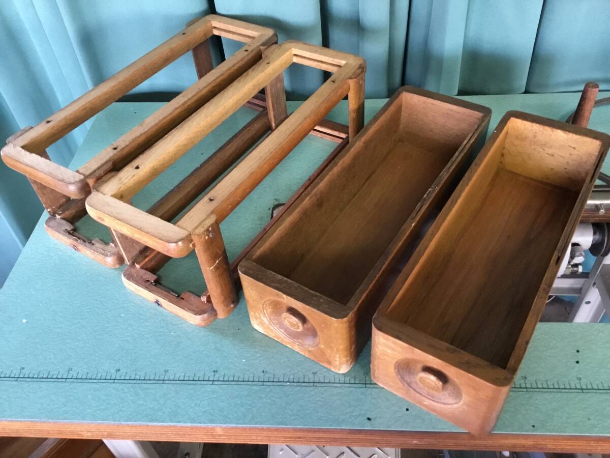 経年の雰囲気が素敵な古い引き出し木箱です。