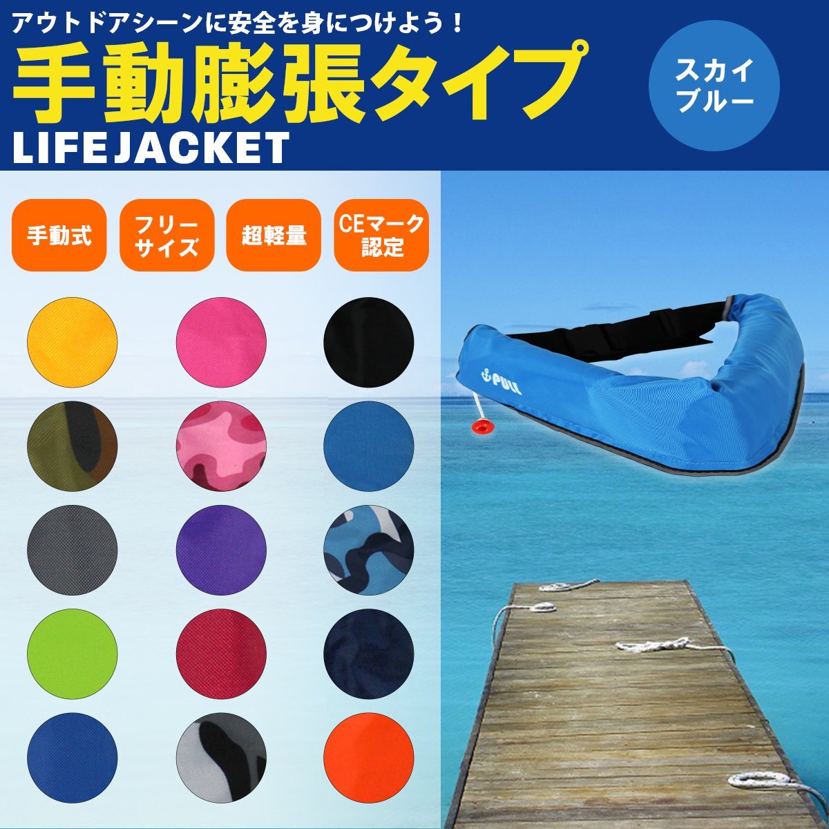 オリジナルカラー多数! ライフジャケット 手動膨張式 腰巻 腰 ベルトタイプ ウェスト固定式 スカイブルー/水色※男女兼用!フリーサイズ
