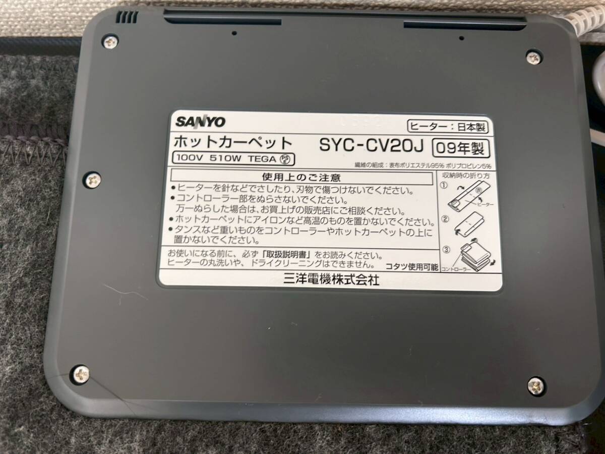| 12-18 SANYO サンヨー ホットカーペット 電気カーペット SYC-CV20J 2畳 176㎝×176㎝ 電源ON/OFFのみ確認済 画像分 現状品 返品交換不可 | ||