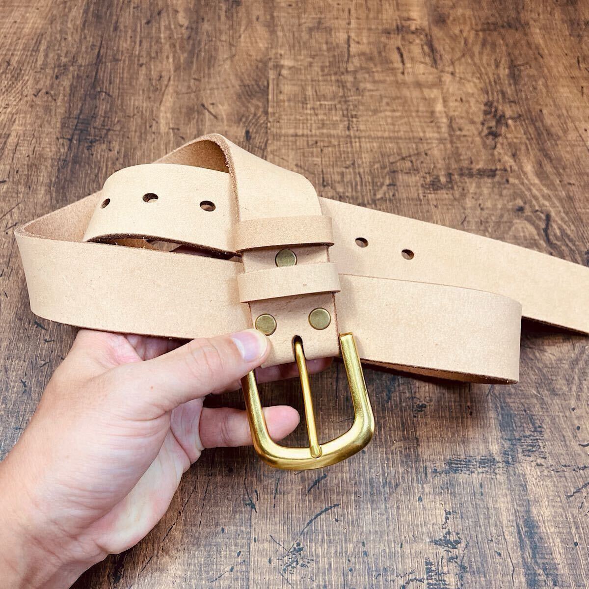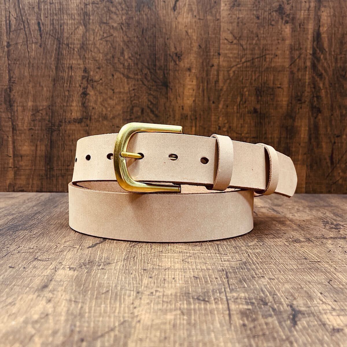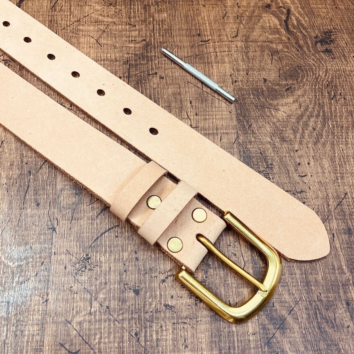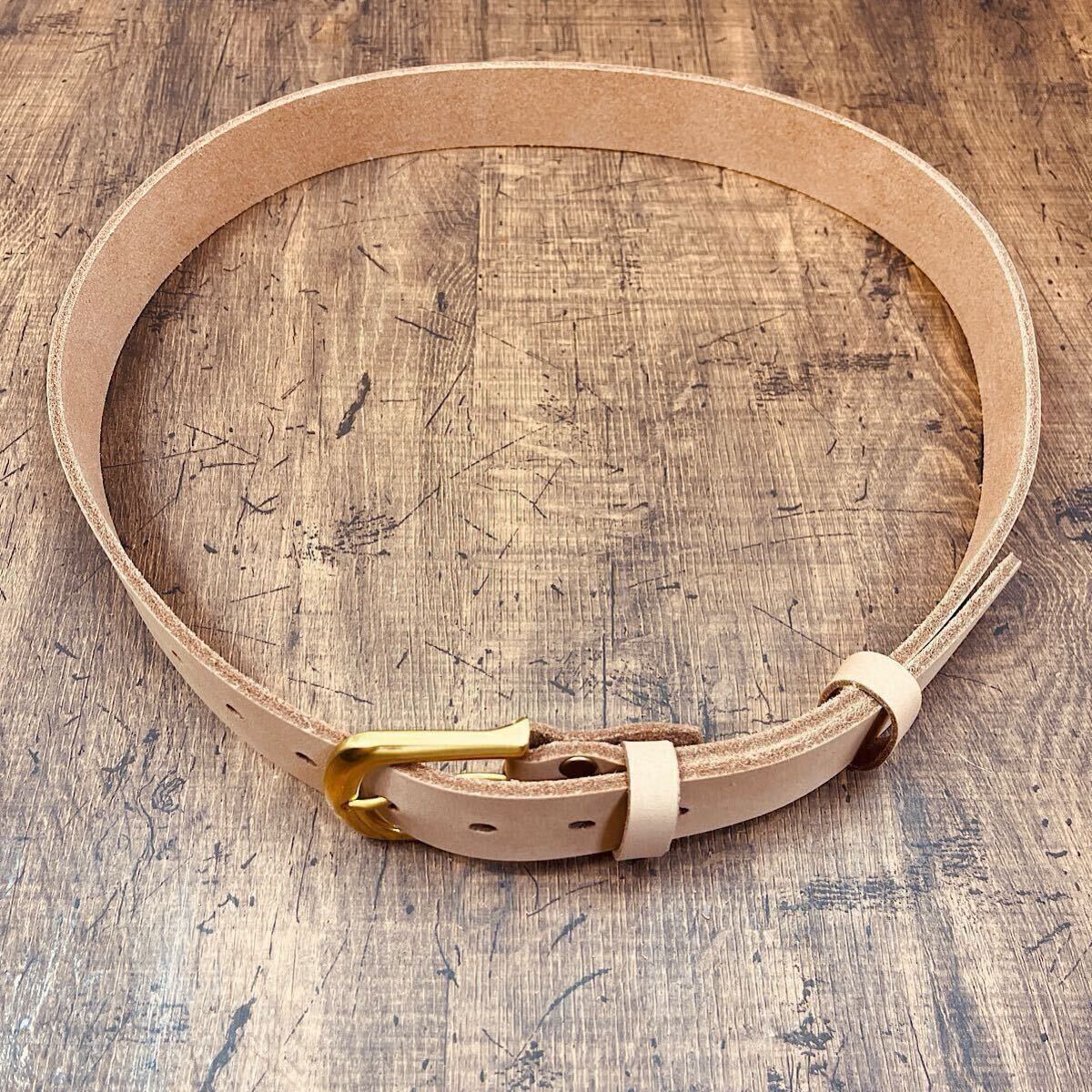 本革の醍醐味であるエイジングが存分に楽しめるナチュラルヌメ革を使用したレザーベルトです。使えば使うほどに味が出てきます。しっかりとした厚みで作られた重厚なゴールド色のバックルが高級感を与えます。