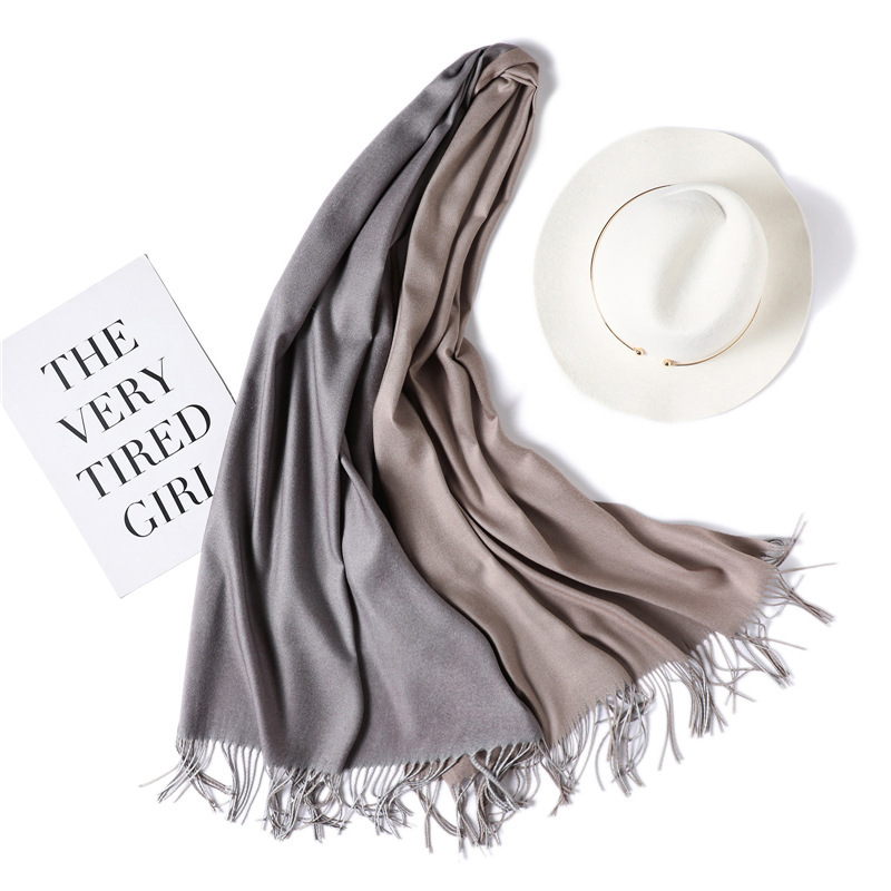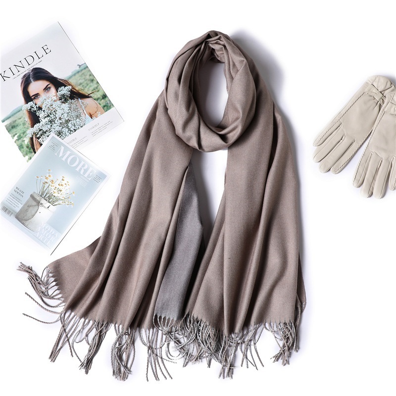 新入荷☆新品定番 上質大判 カシミヤ100% マフラー ストール 最高の肌ざわり リバーシブル グレーベージュ系