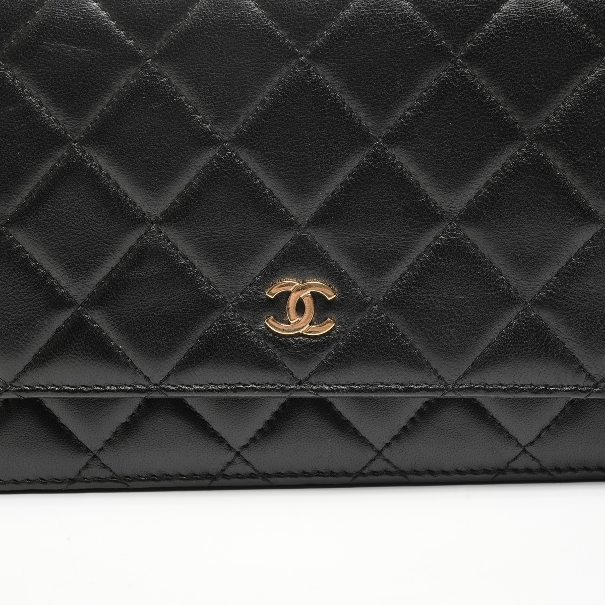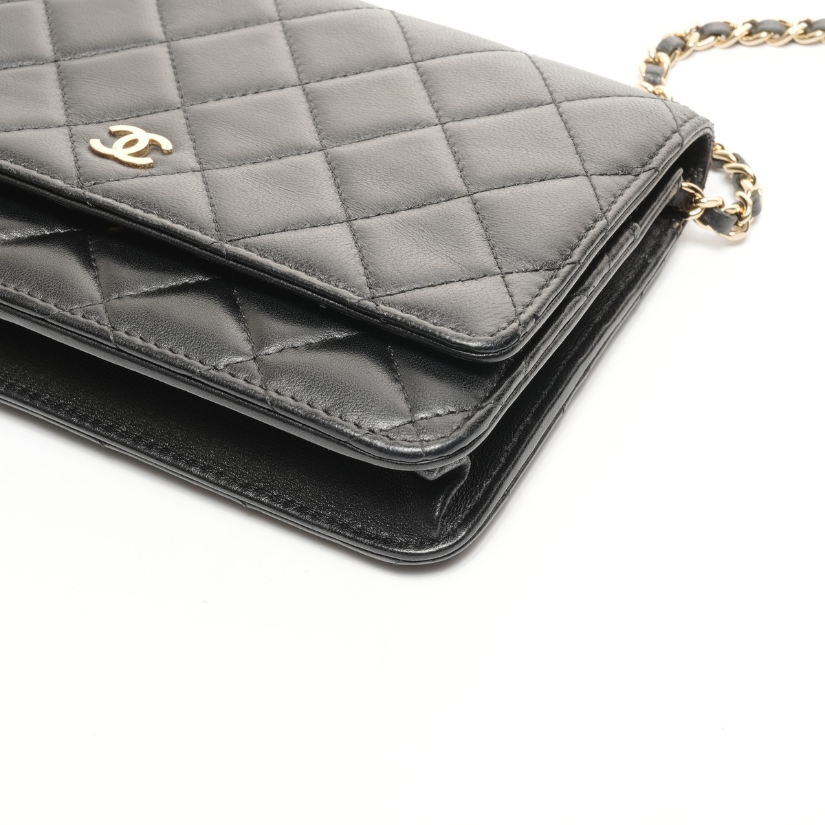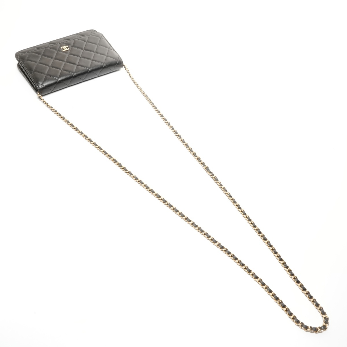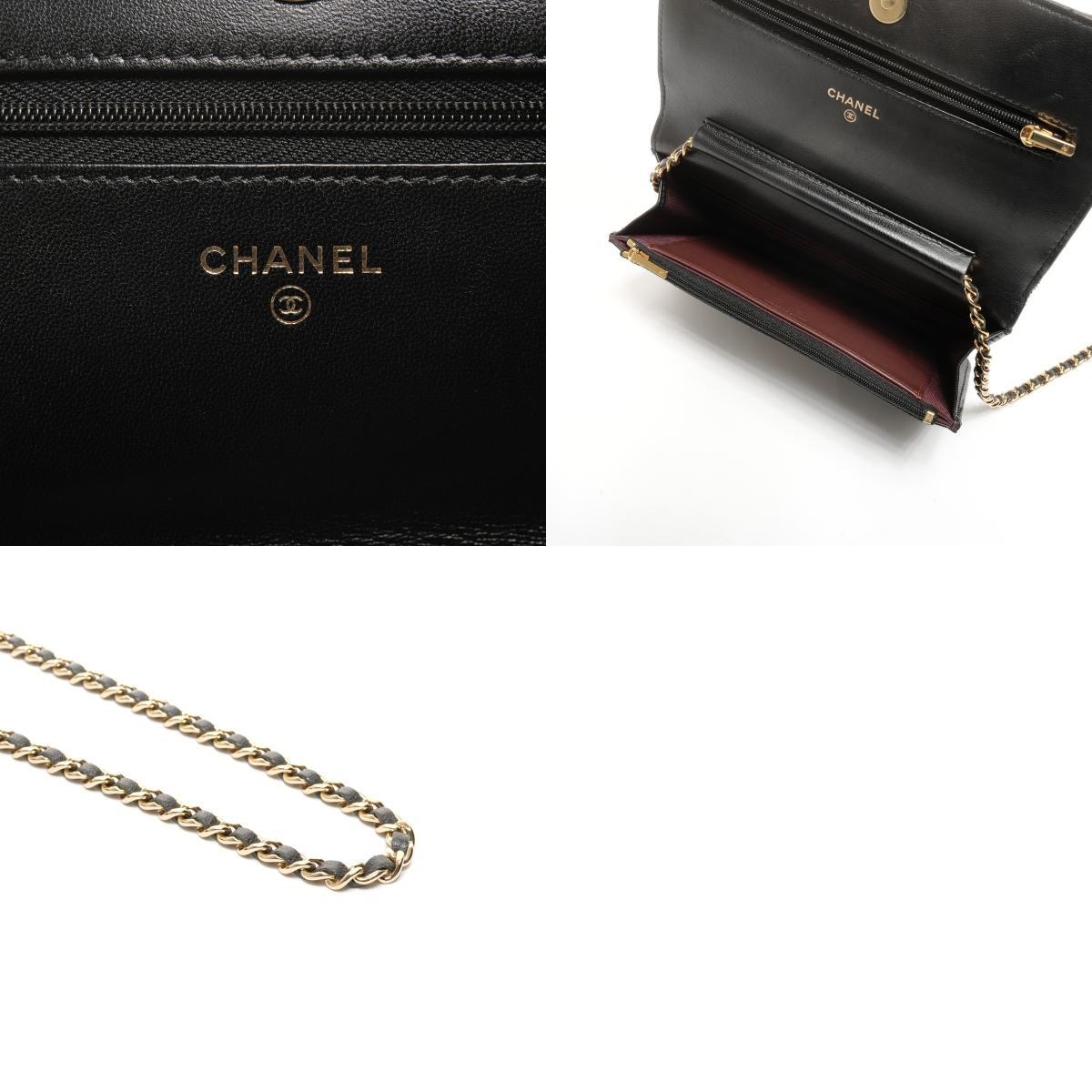 極美品 CHANEL 28番台 2019 ラムスキン マトラッセ チェーン ウォレット ショルダーバッグ ブラック