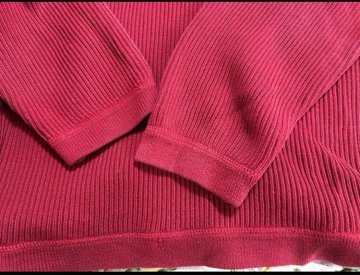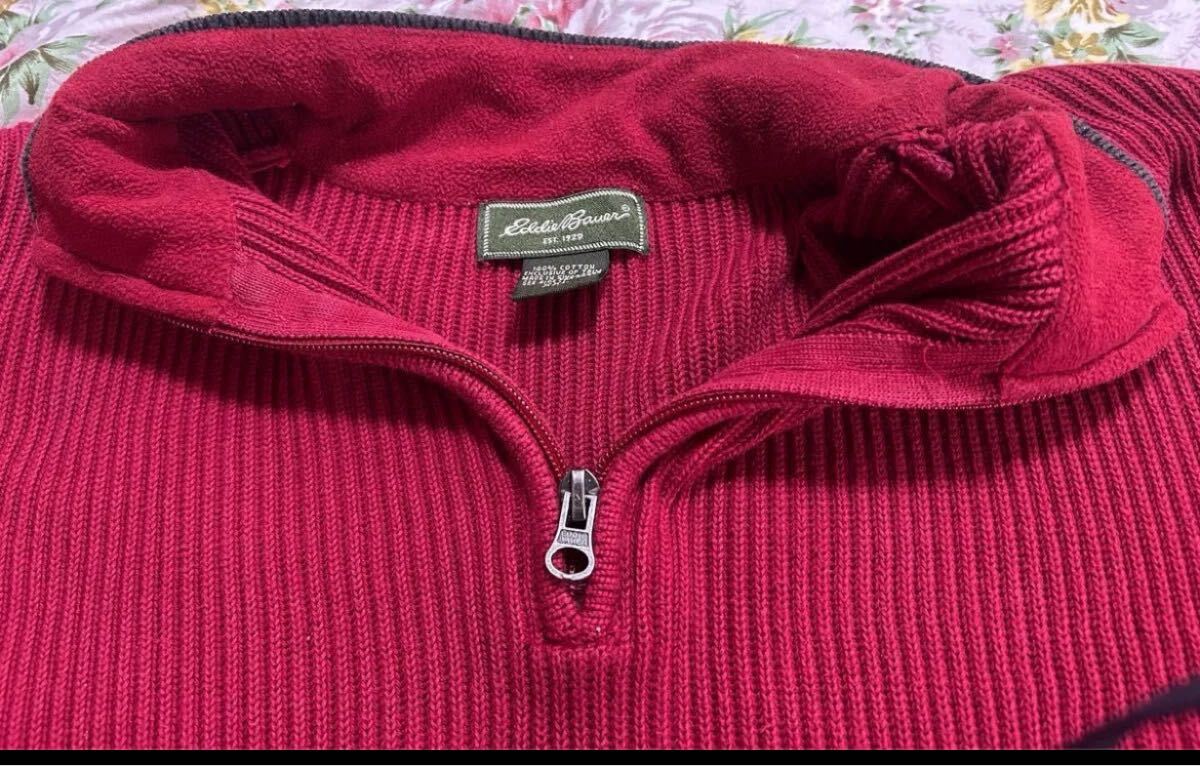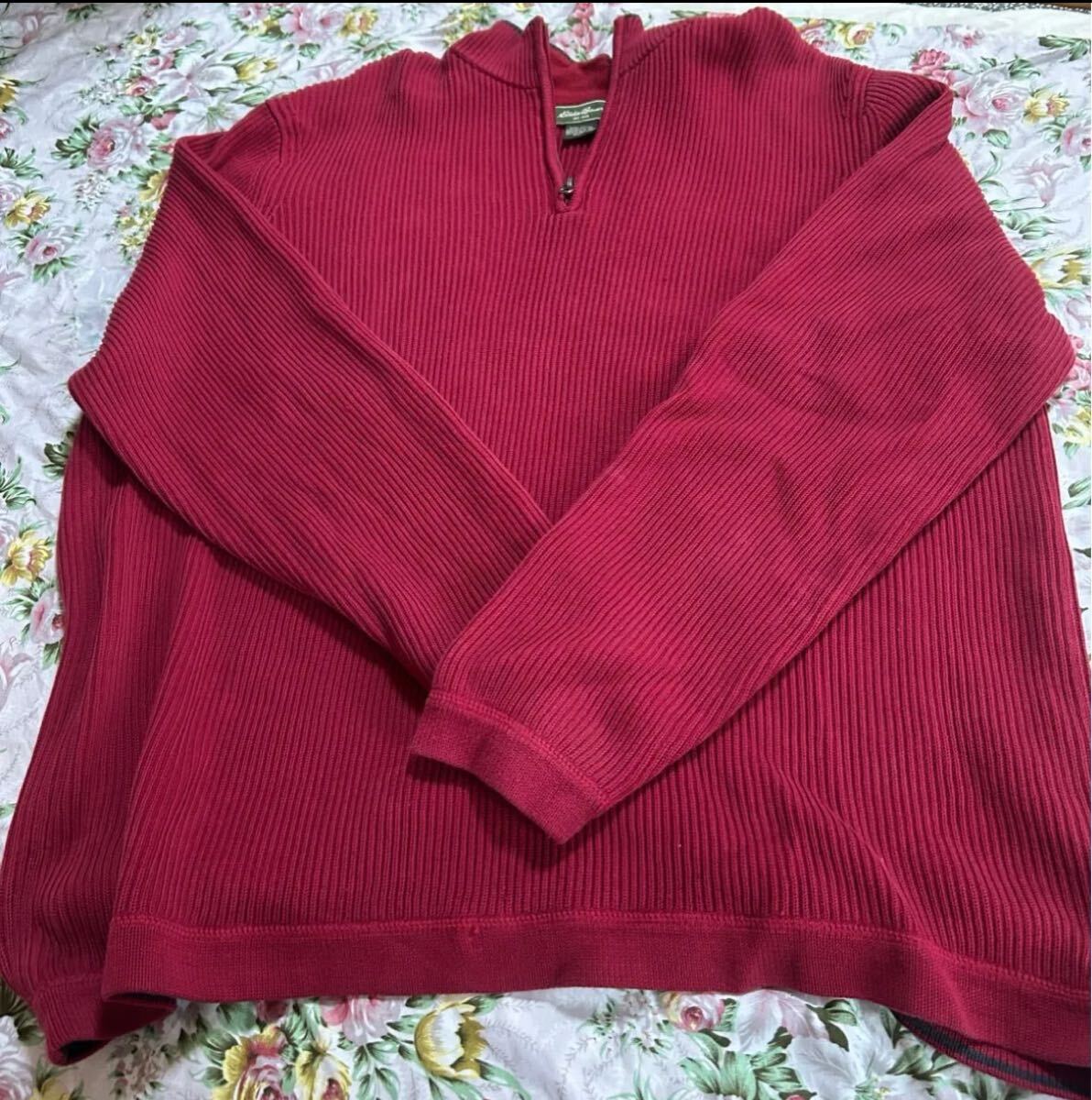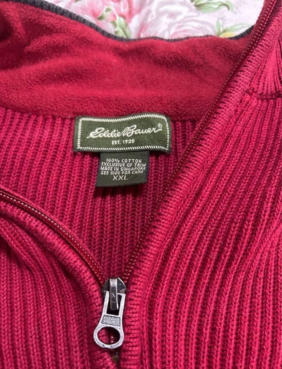 90s 00s エディーバウアー eddie bauer コットン ハーフジップ リブ 厚手 ニット セーター レッド
