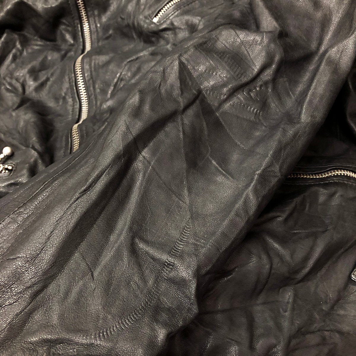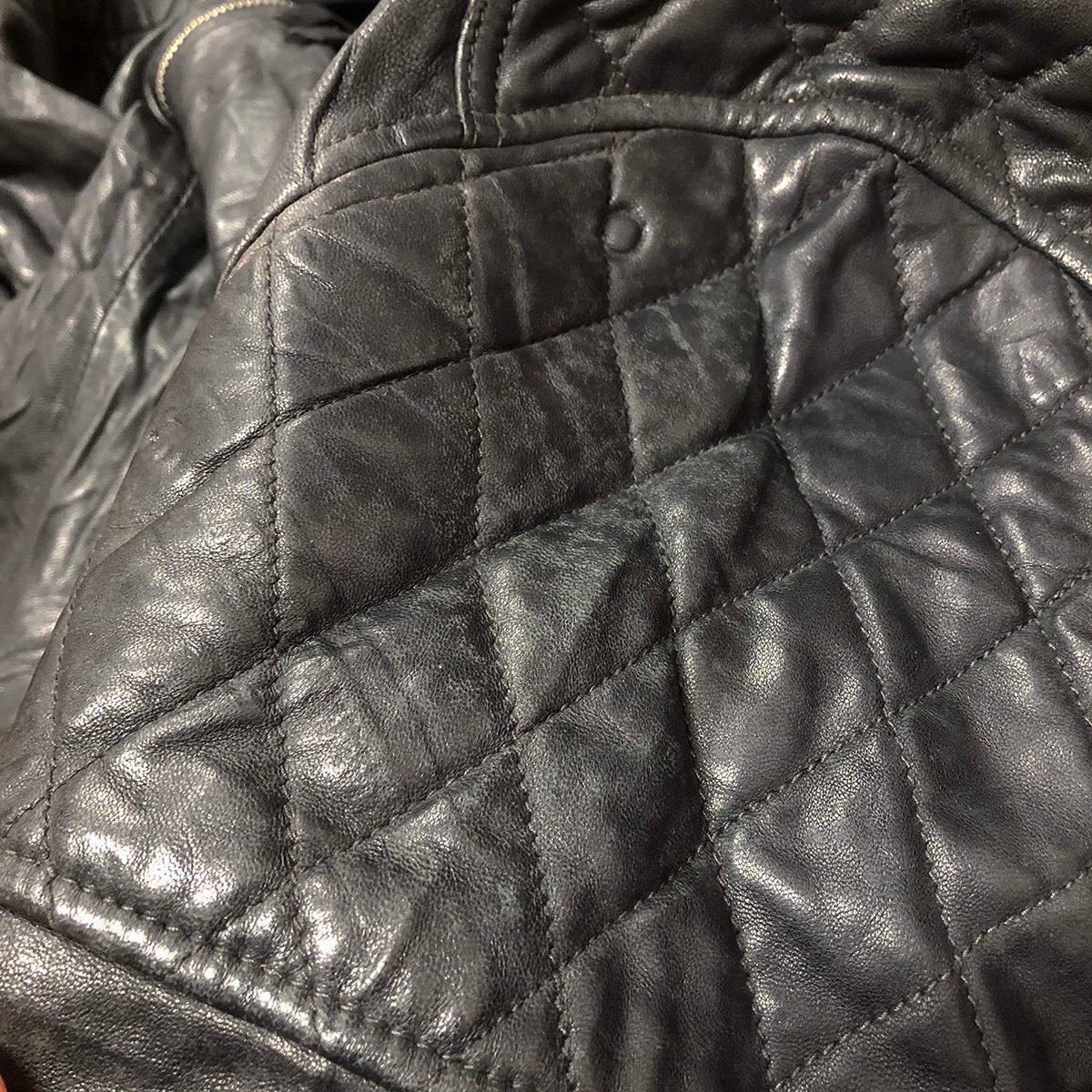 中古品です。使用感があります。肩周りや胸や腹部や腕など全体的に経年に擦れや色褪せや跡、ポケット内にリペア跡があります。