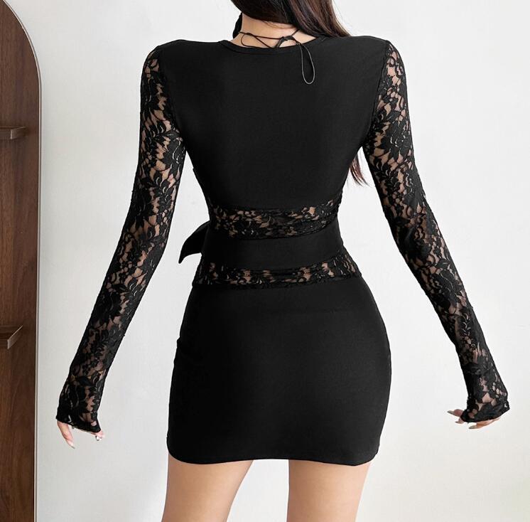 303 ワンピースladiesレディース ◇ 綺麗めシルエット ◇   dress   長袖  レース ミニ丈