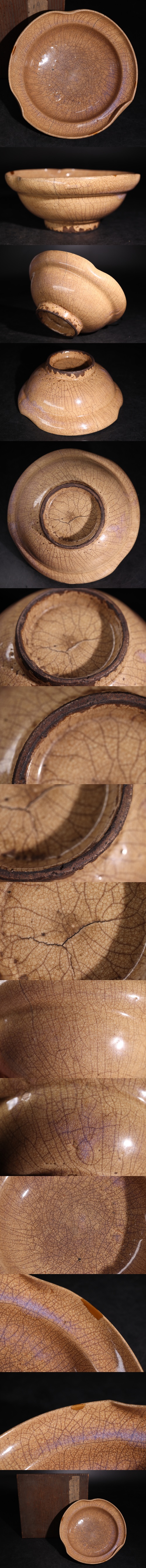 | 時代 哥釉 鉢 木箱付 金継ぎ / 中国美術 哥窯釉 哥窯 皿 茶器 煎茶道具 煎茶飾 .G3142 |