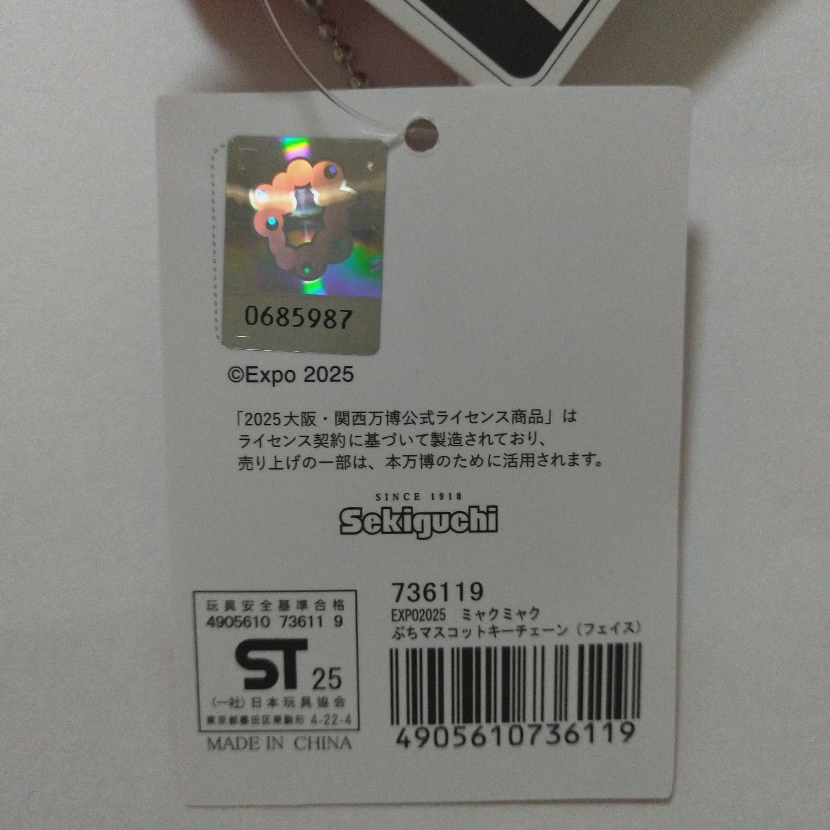 大阪・関西万博公式ライセンス商品、ミャクミャクのぷちマスコットキーチェーン(フェイス)です。