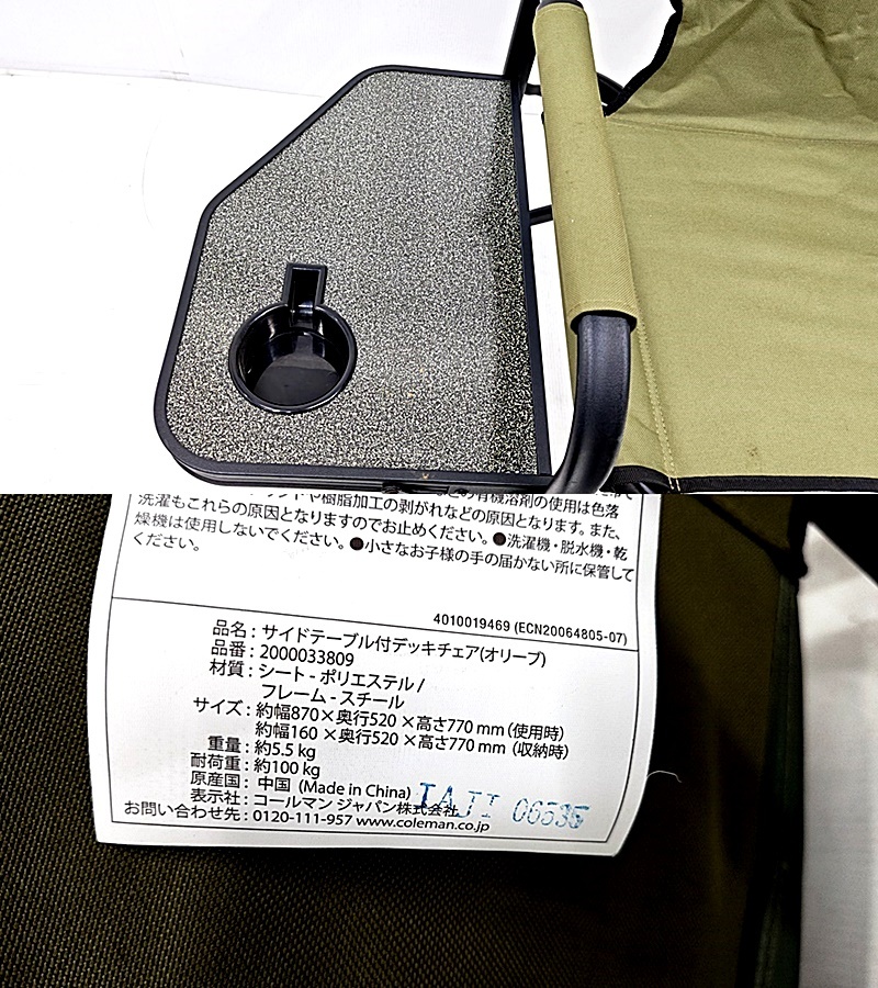 下松)Colman コールマン サイドテーブル付きデッキチェア ▲★J251121N05A NM21B