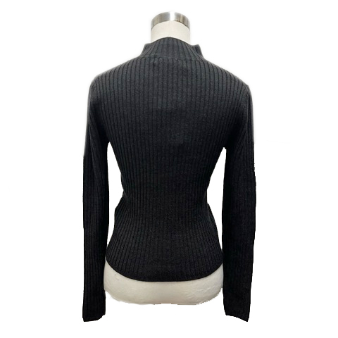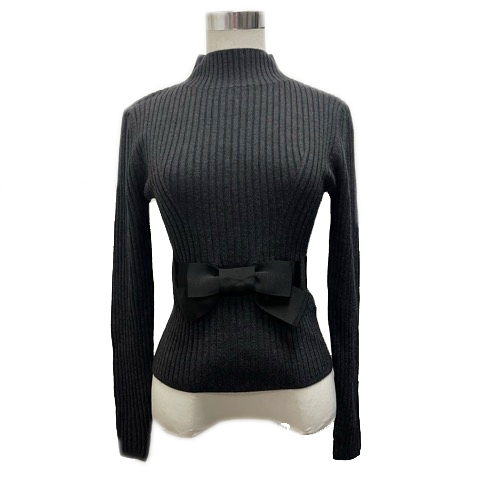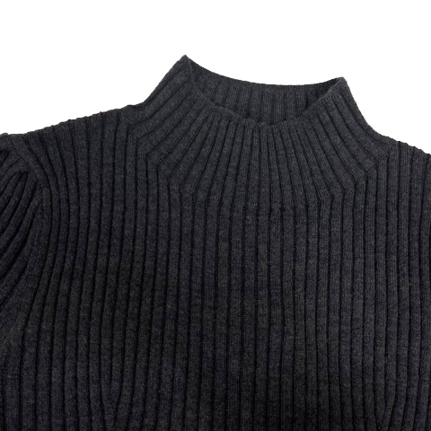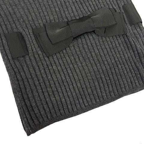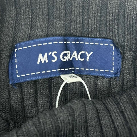 未使用品 エムズグレイシー M'S GRACY ニット セーター モックネック ウール混 リブ リボン 長袖 38 チャコールグレー レディース