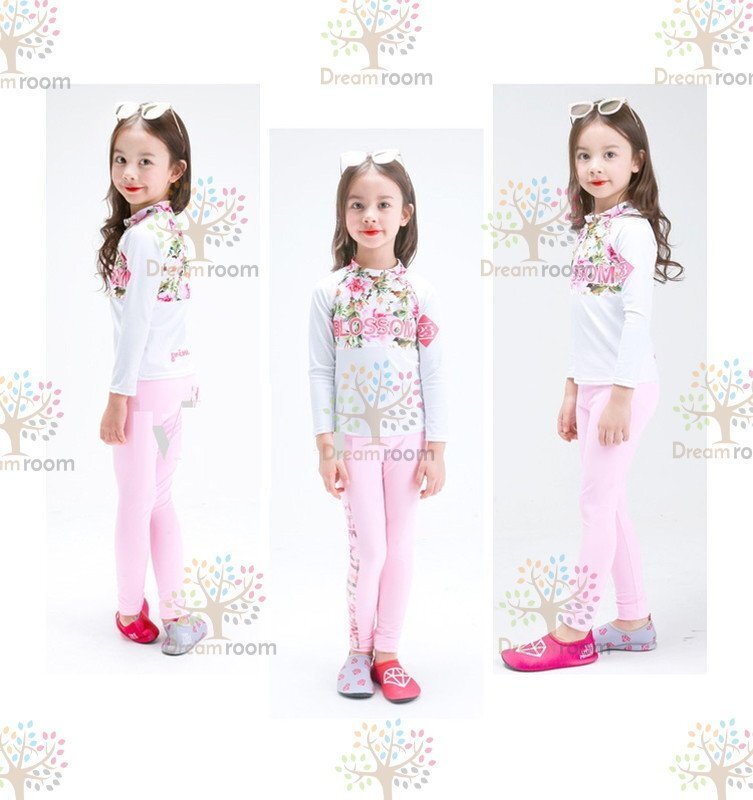 1スタ☆ラッシュガード セパレート水着 上下セットアップ ホワイト【4XL】135-150cm 子供服 女の子 レギンス 長袖 ズボン 日よけ ビキニ 海 プール swi-114