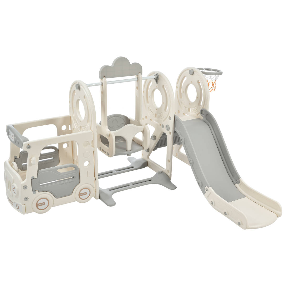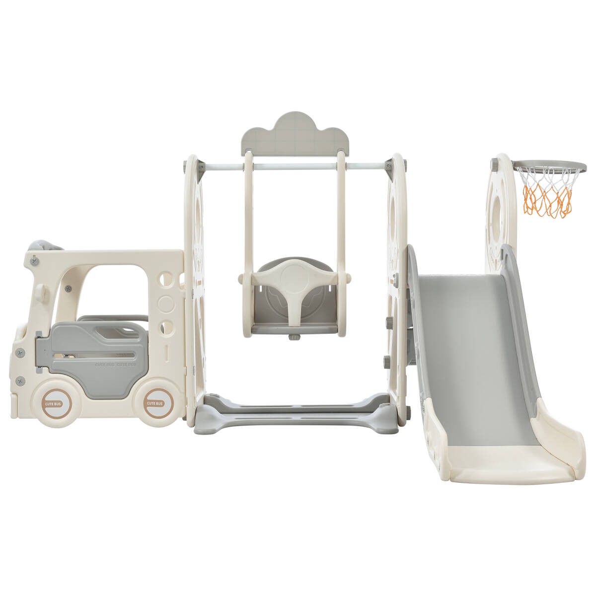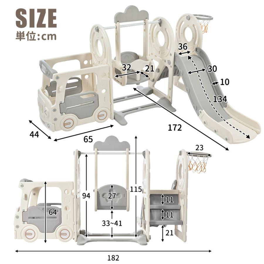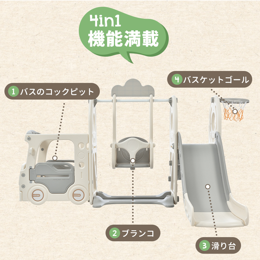 • 【機能満載4in1】1、バスのコックピット 2、滑り台 3、ブランコ 4、バスケットゴール