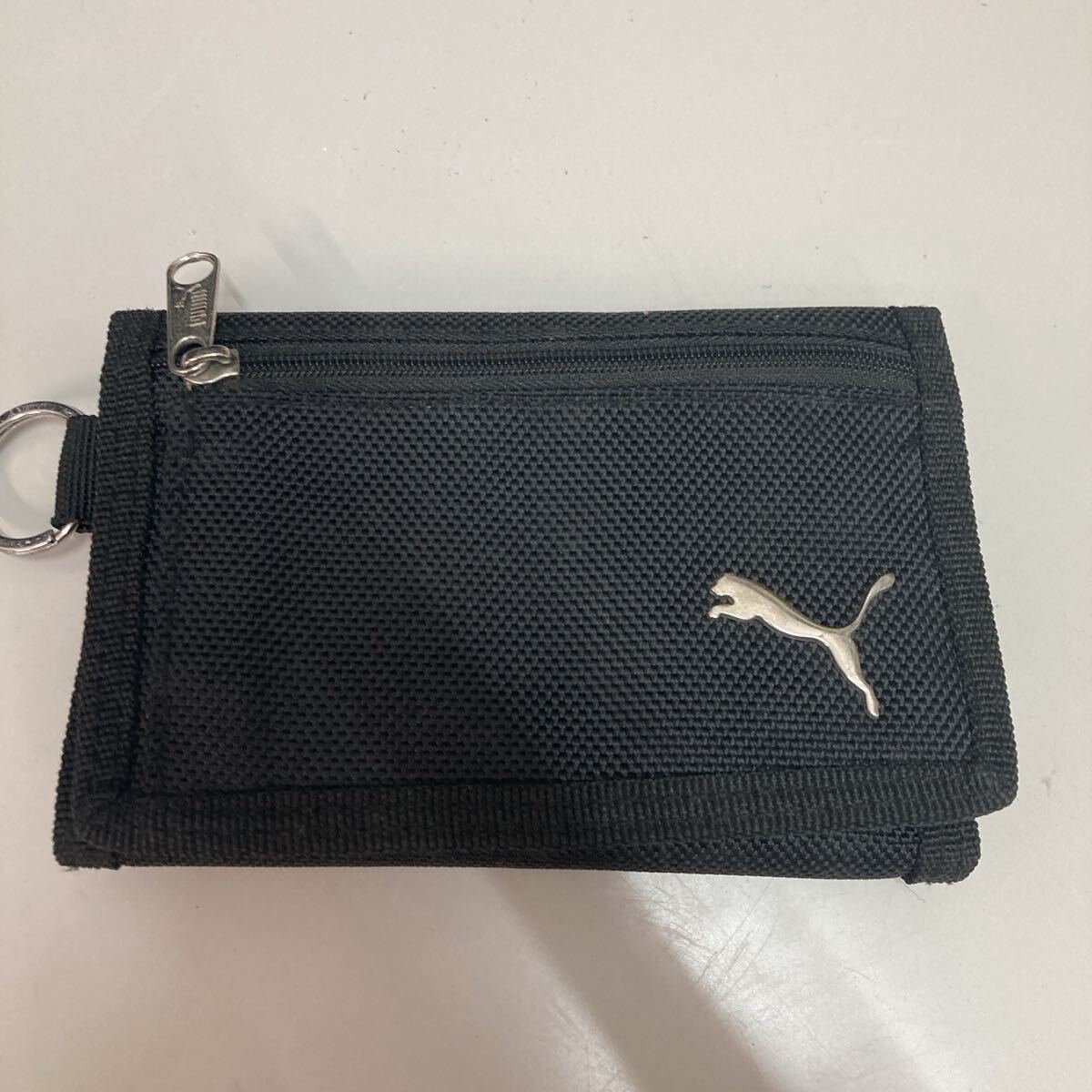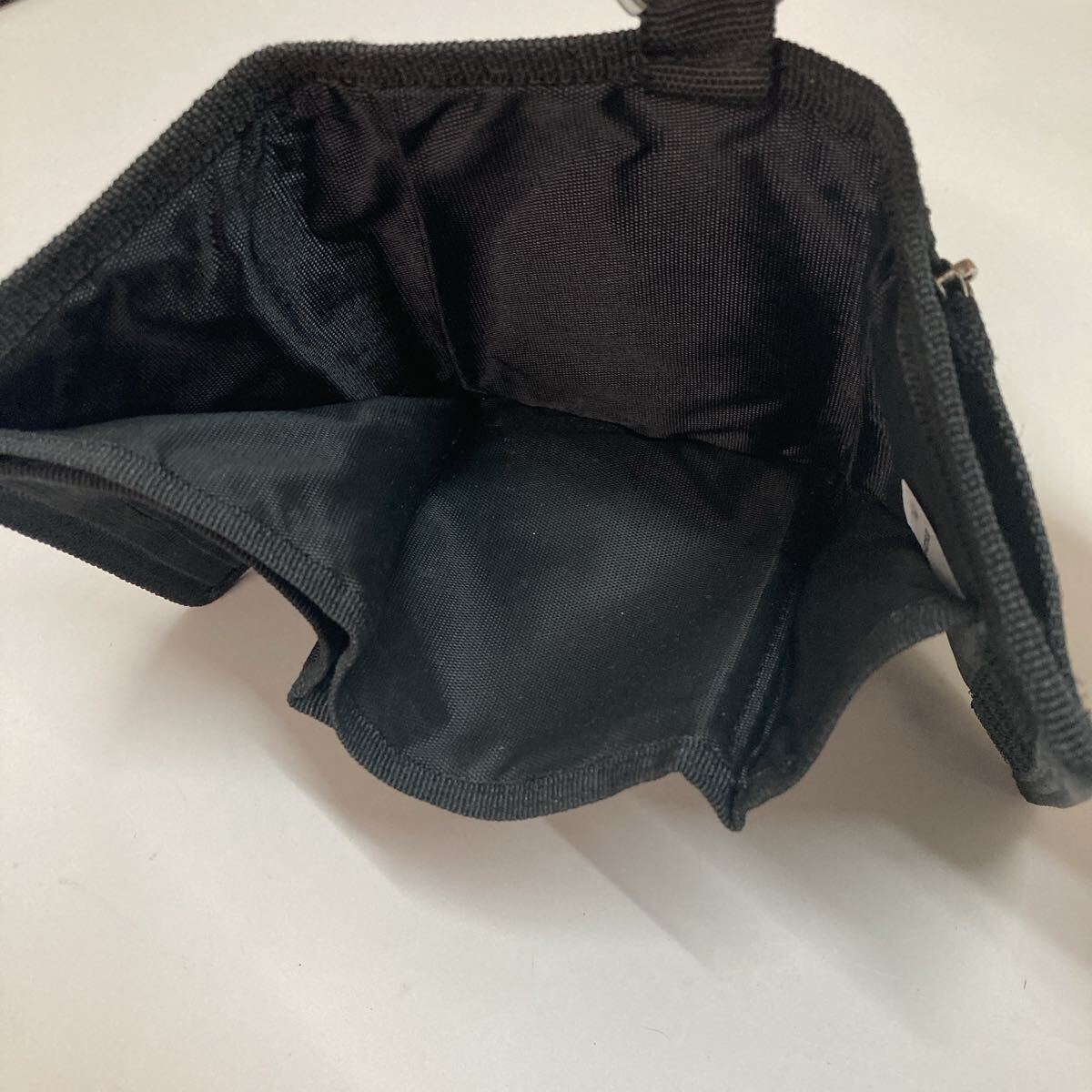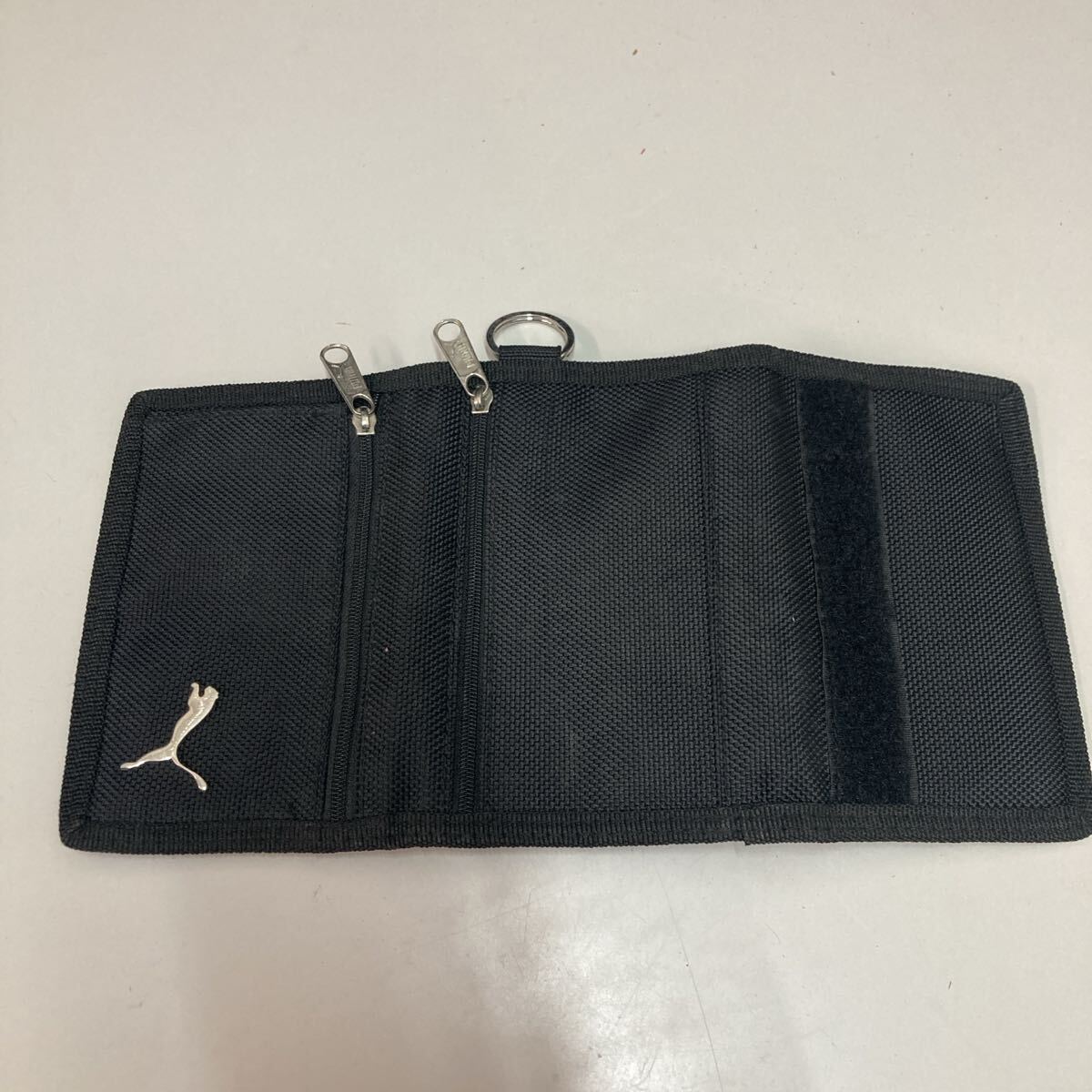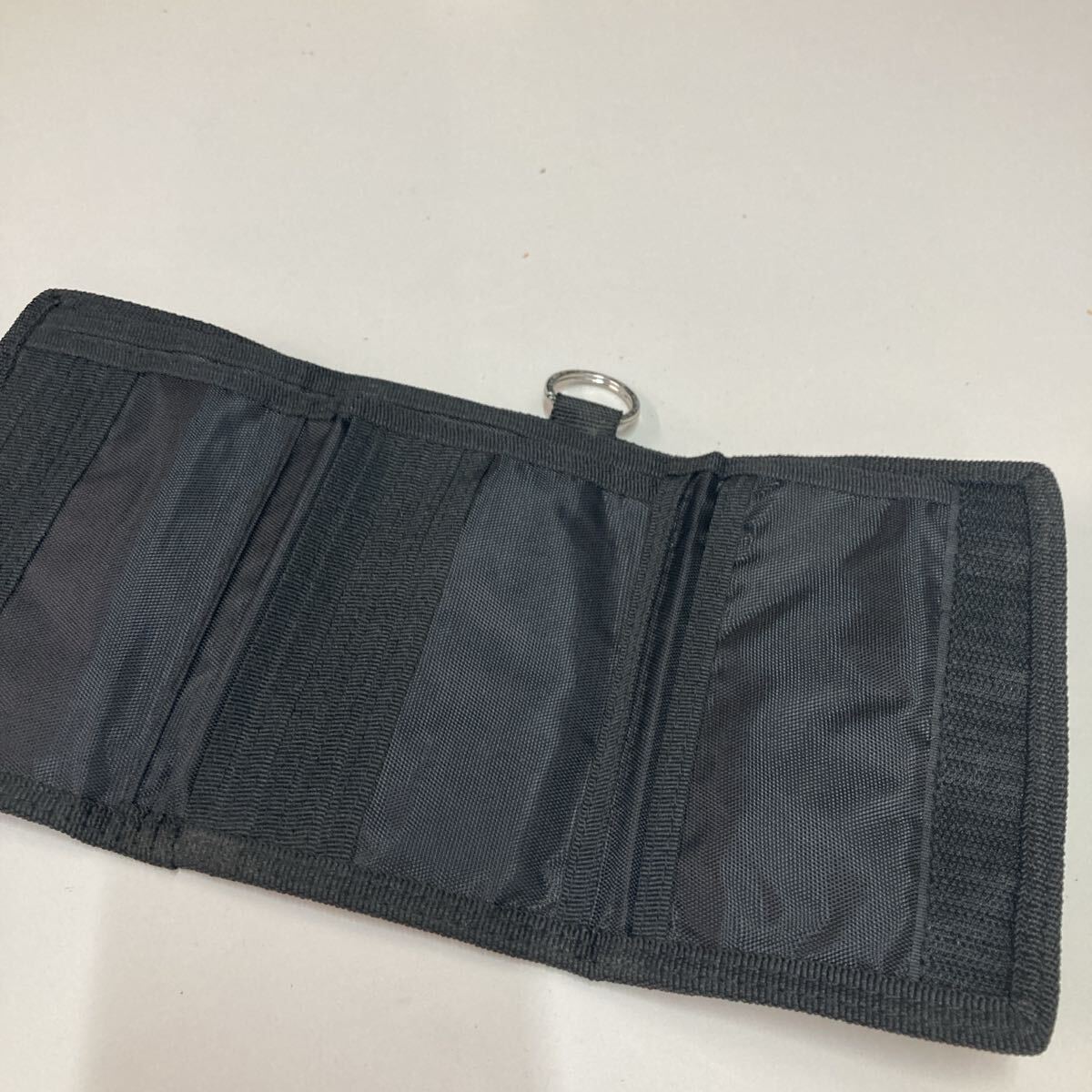 ナイロン製のブラック財布、ジッパー付きでポケットが複数あり、収納力抜群。