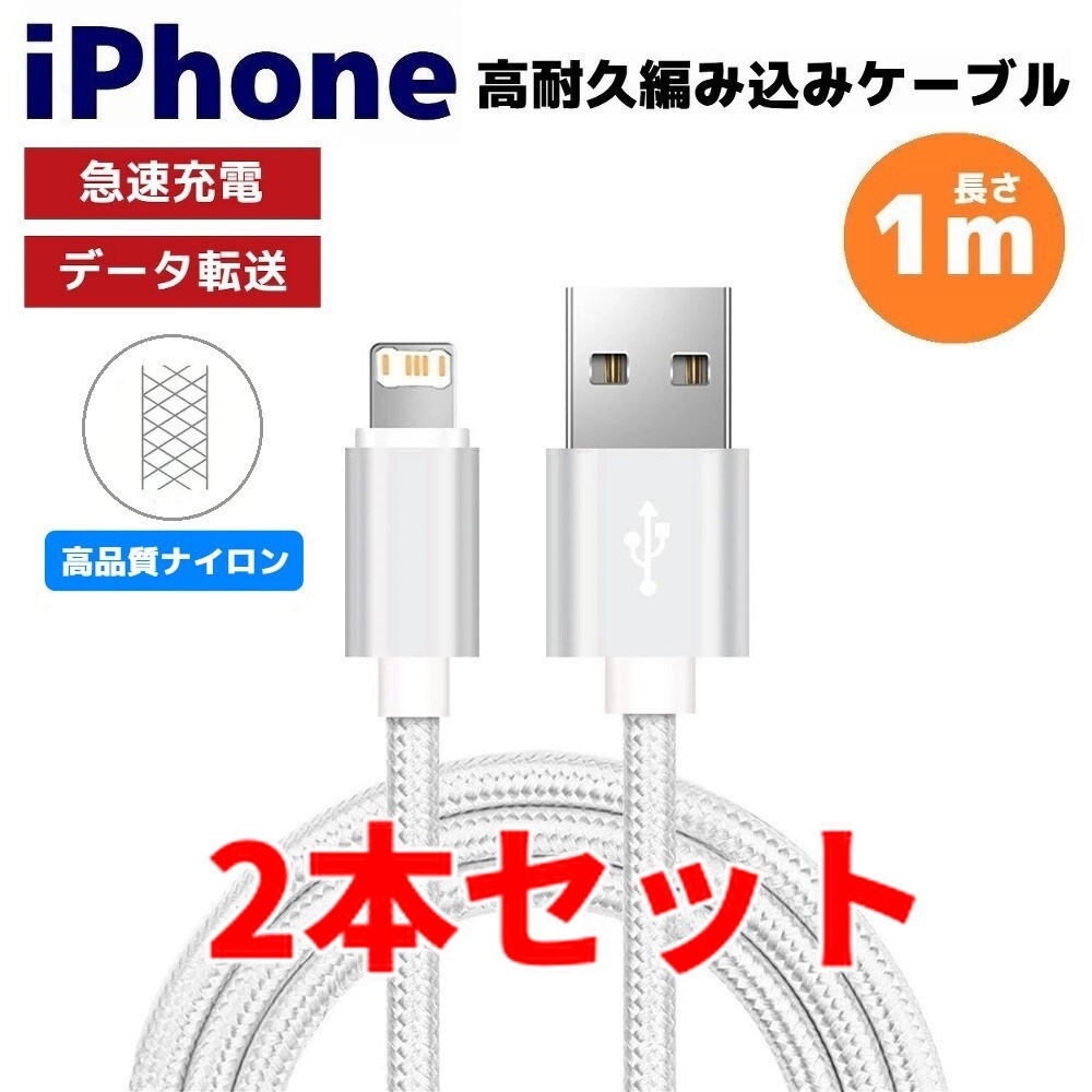 2本セット iPhone 急速充電 編み込み ライトニング ケーブル コード 充電 データ通信 1m 100cm 6 7 8 10 11 12 13 14 mini pro promax plus