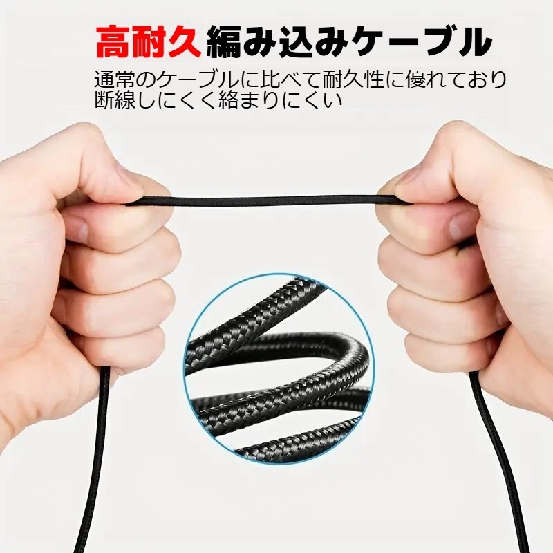 断線しにくく絡まりにくい編み込み素材を採用したライトニングケーブルです。