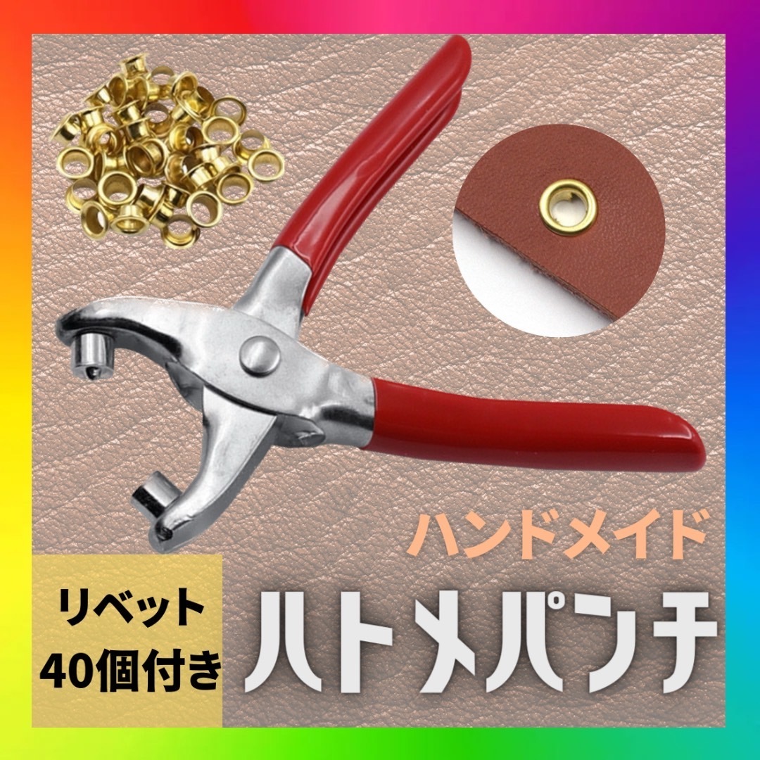 プライヤー式のハトメパンチで、ハンドメイドやレザークラフトの作成、既存の穴の補修がこれまで以上に簡単に行えます。リベット約40個がセットで付属するので、すぐに作業を開始できます。