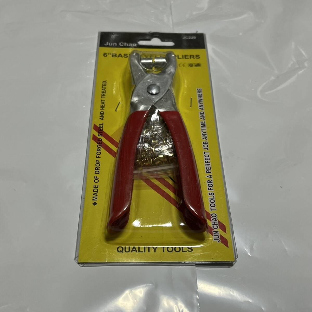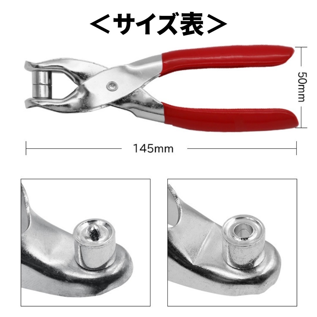 ハトメパンチはプライヤー式で、1度のプレスでリベットをしっかりと取り付けられます。初めての方でも簡単に使用することが可能です。