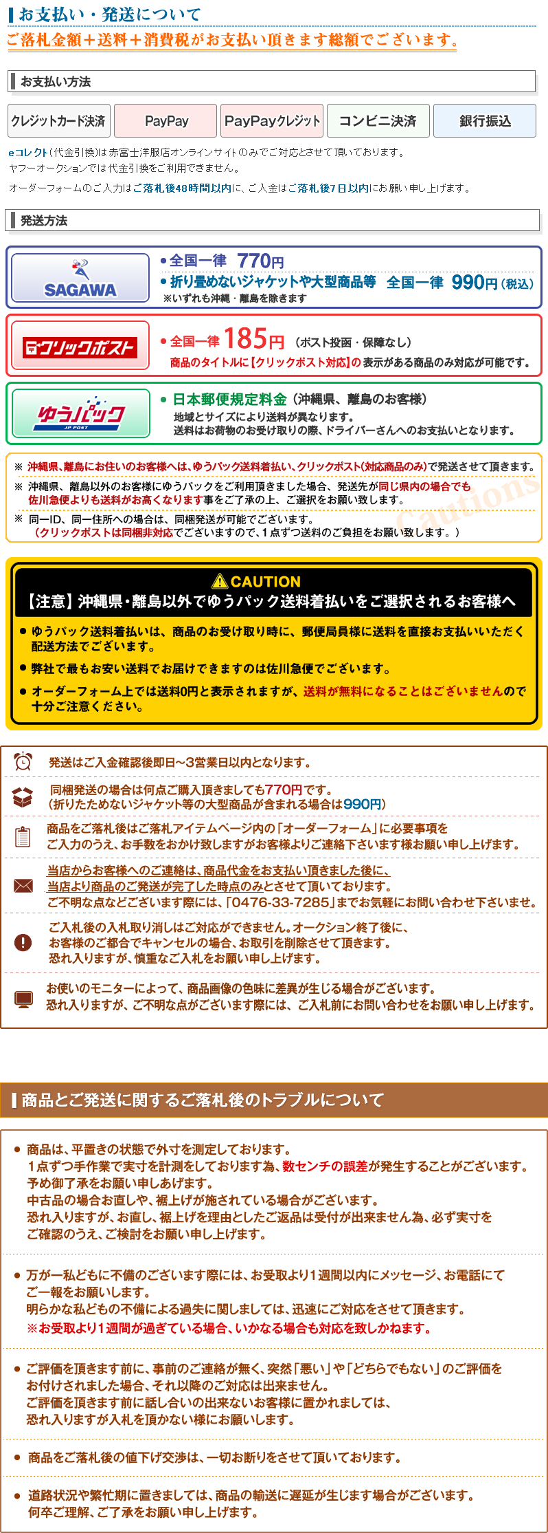 Ⅲ.一旦成功中标,您必须全额支付该拍品(成交价+消费税+银行转账费+日本邮费+代购费)。