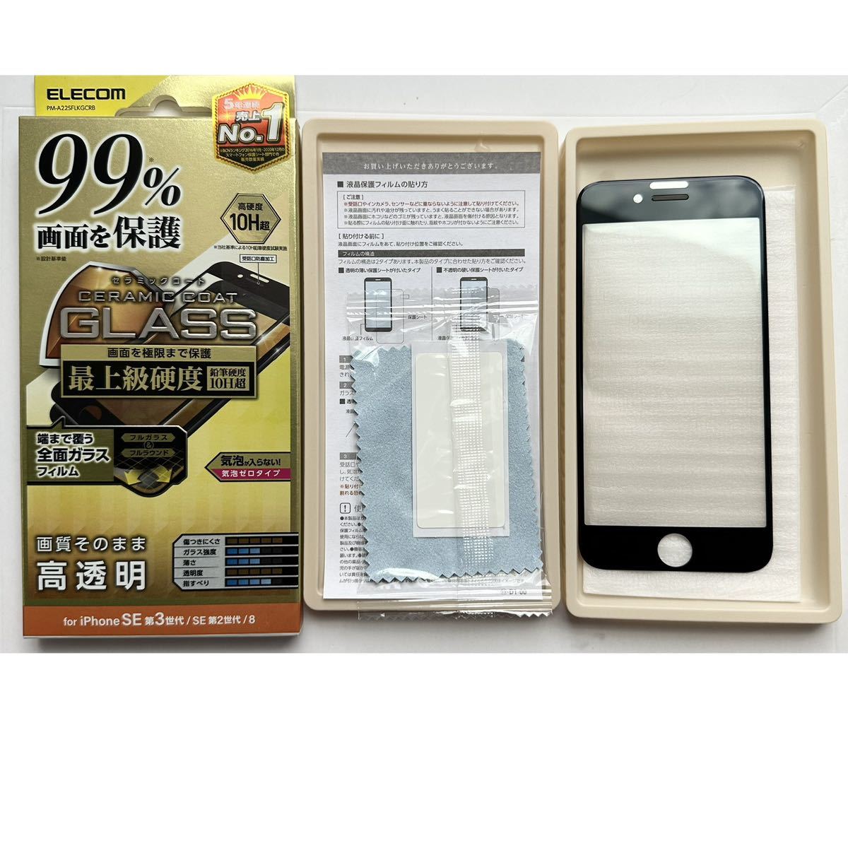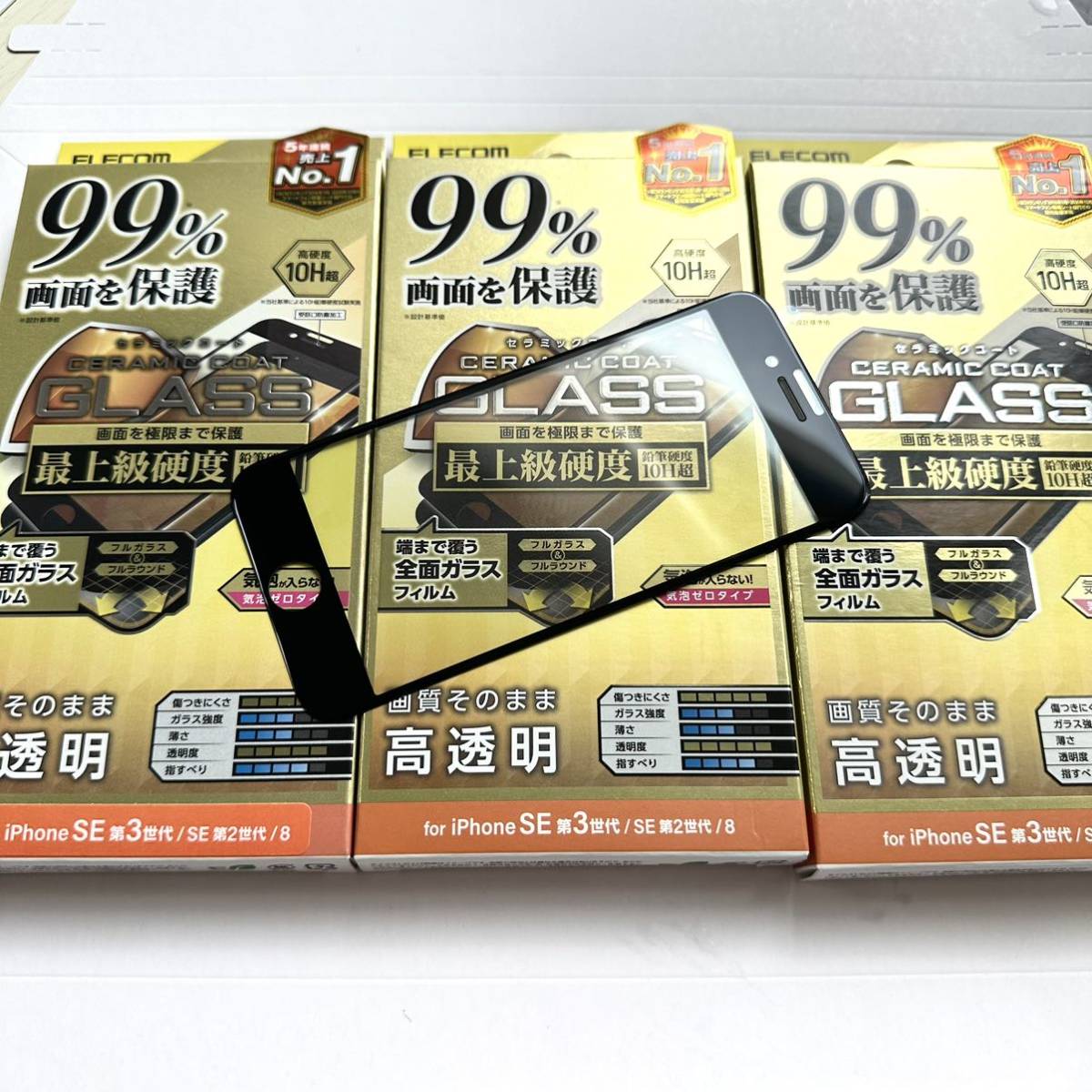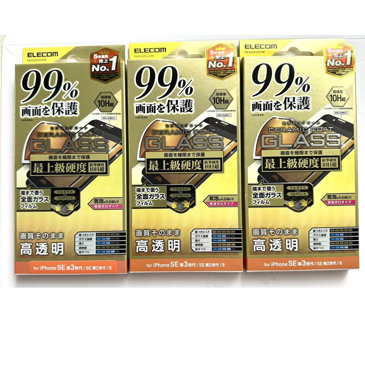液晶画面カバー率99%。超極み設計を採用し、鉛筆硬度10H以上のセラミックコートにより傷に強い、iPhone SE 第3世代、iPhone SE 第2世代、iPhone 8、iPhone 7用液晶保護ガラスです。