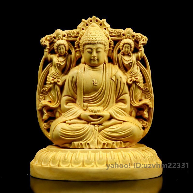 釈迦 両面 黄楊木 両面彫刻 観音菩薩 阿弥陀仏 仏護神仏 像仏教美術 細密彫刻 菩薩像 匠高技術 木彫 置物