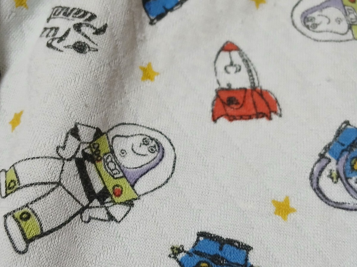 ワンシーズン着用品になります。多少着用感あり、パンツ右足膝に穴空きをワッペンで貼り補修しています。目立つシミ汚れ見当たりません。パンツウエストゴム交換可能。状態の感じ方には個人差があります。神経質な方は入札ご遠慮下さい。気になさらない方これからの季節お着替えに。
