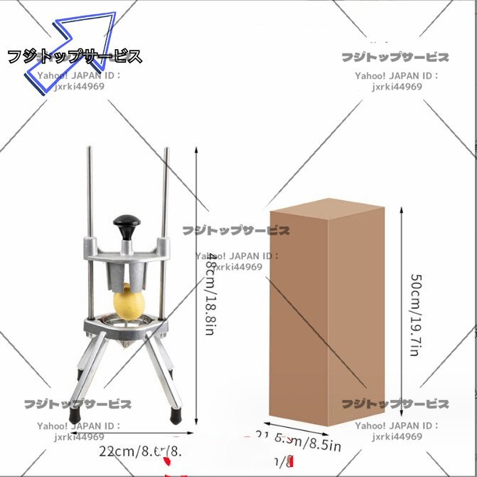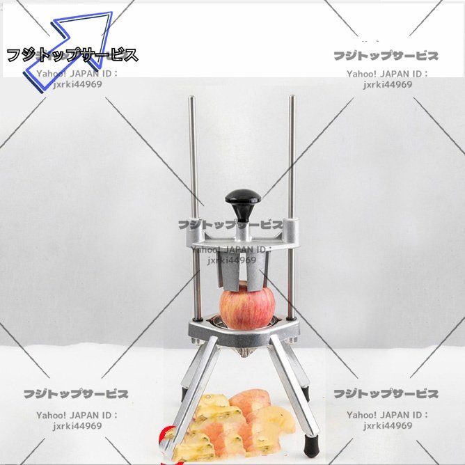 適用果物:リンゴ、レモン、オレンジ、梨など直径10cm以内の果物を6等分できる!同時に芯抜きできる。切れ味抜群!