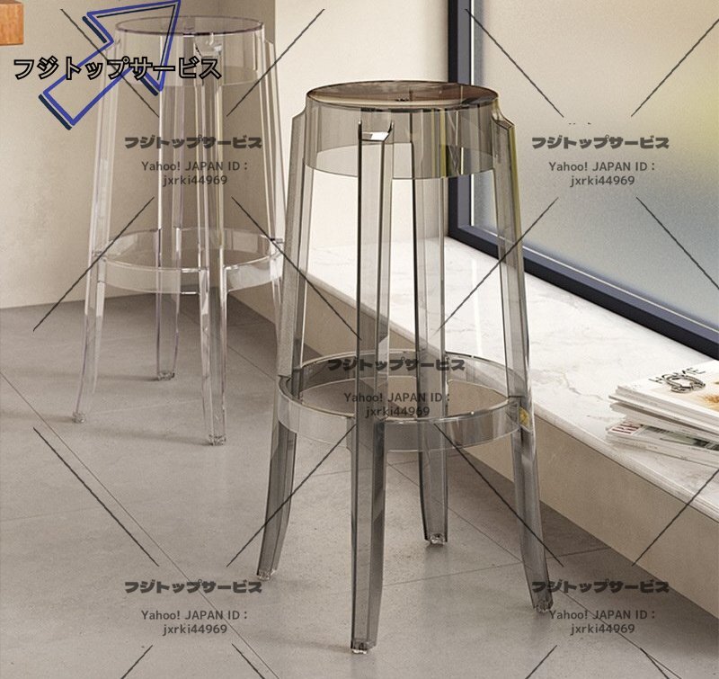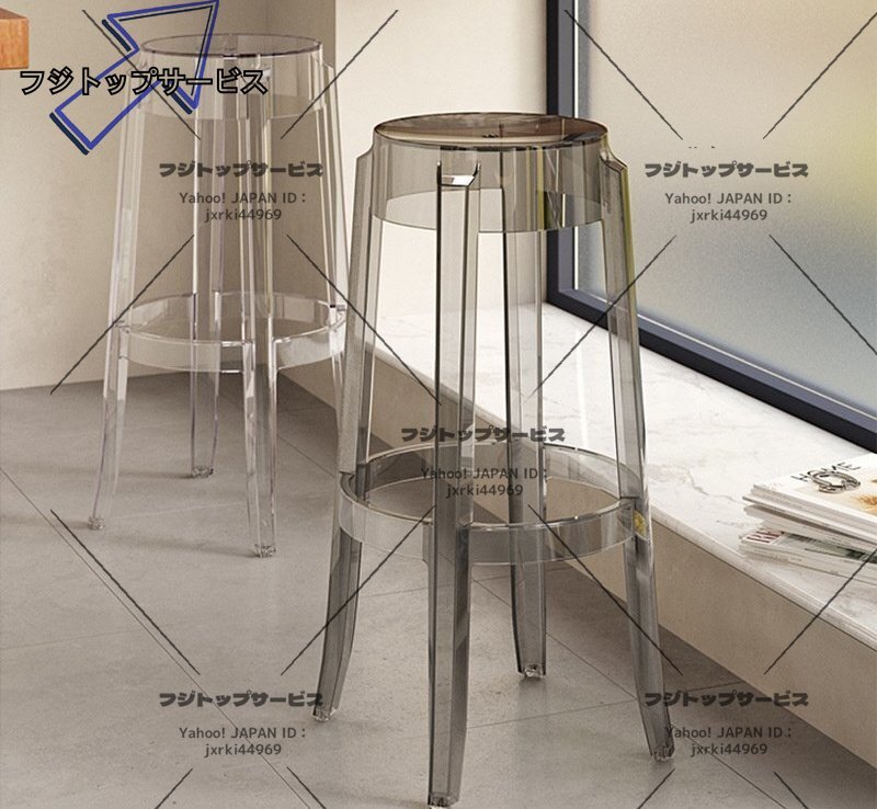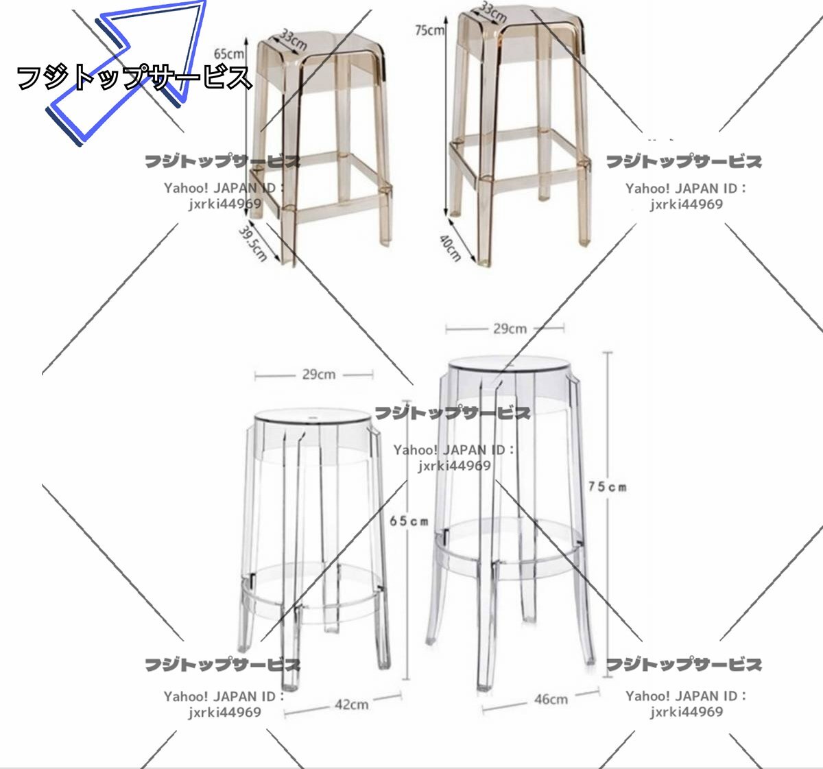 人気美品★ ハイスツール バースツール 椅子 チェア おしゃれ 65cm 75cm 背もたれなし キャスター無し 透明 クリア グレー アンバー
