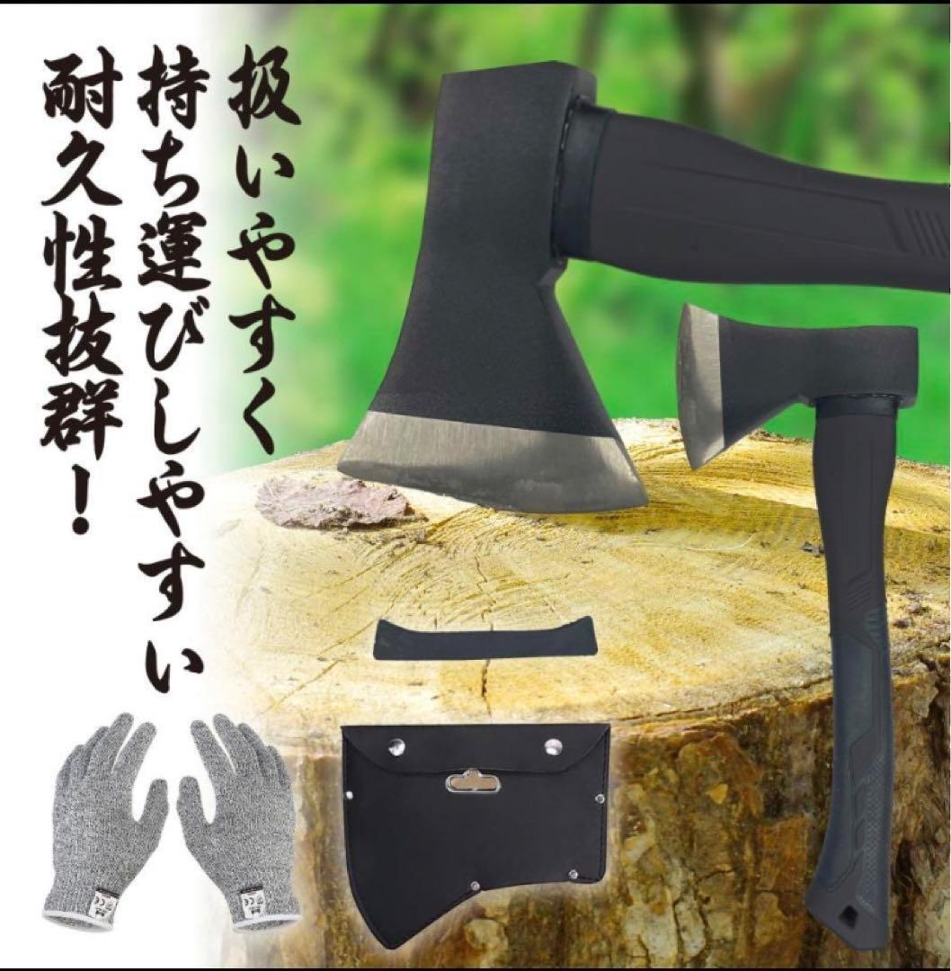 付属品: 専用刃保護用ゴムカバーと斧ヘッド用PU保護カバーと手袋付きです。