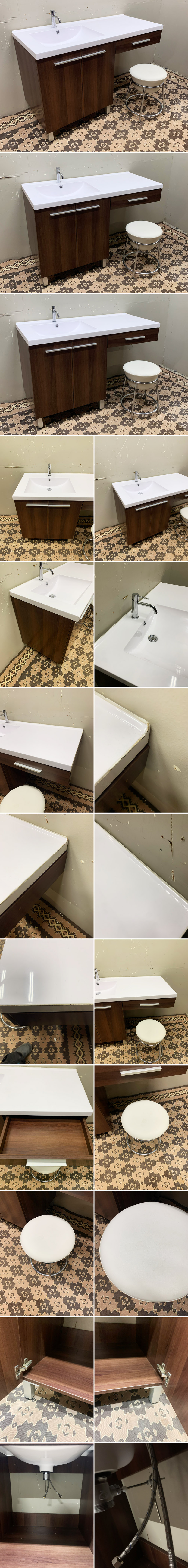 こちらの商品は都内近郊のみ配達が可能な商品です。それ以外の地域の方は、倉庫への直接引き取りに来て頂くか、チャーター便もしくは混載便の手配が必要となります。 今回ご紹介するのは、アドヴァン社より、シンプルなデザインが印象的な、 洗面化粧台です。 蛇口はイタリアのGESSI社の物を採用、都会的なデザインです。 下部収納部分も広く、日用品を収納する事ができます。 この機会に是非ご購入ご検討ください。 ※プッシュアップの機能をするための丸いボール状のパーツを固定する蓋が欠品しているため、現状排水栓のプッシュアップは機能しません。 ※給排水に関するアイテムは写真に写る物のみ付属します。 コンディション;モデルルーム展示品の為、多少の擦れや、小傷はありますが、全体的に美品です。 サイズ:横幅122×奥行55×高さ80㎝ スツール 直径40×高さ44㎝ ※時期により、混載便での配送ができない可能性があります、その場合はチャーター便でのご対応となります、ご入札前に必ずご質問ください。 ※自社配送便・チャーター便・混載便いずれも輸送時に梱包はしません、トラック内にて毛布での養生となります。 ※部材欠品、破損などがございましたら、受け取り後10日以内にご連絡下さい。 10日間を過ぎての問い合わせについては対応できかねますので、予めご了承ください。 |