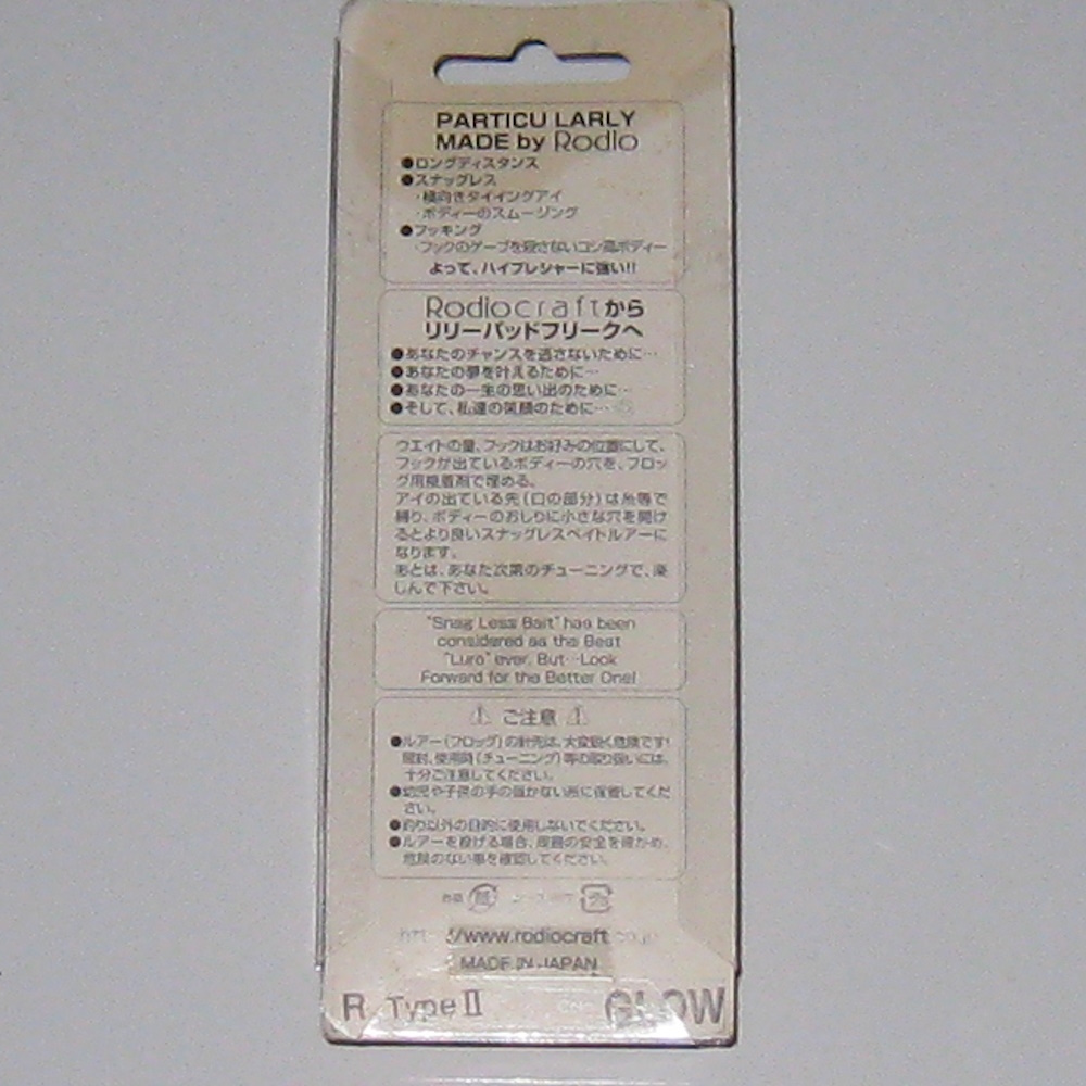 | 商品説明 | ロデオクラフトのフロッグ、クロークR タイプ2です。 パッケージには、長期保管による経年劣化があります。 カラーはグローです。 |