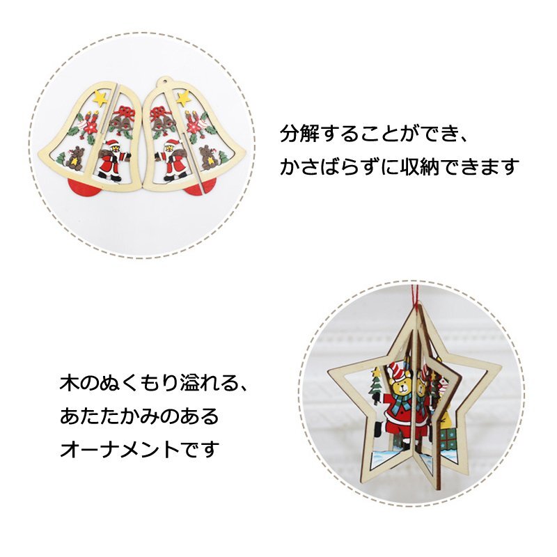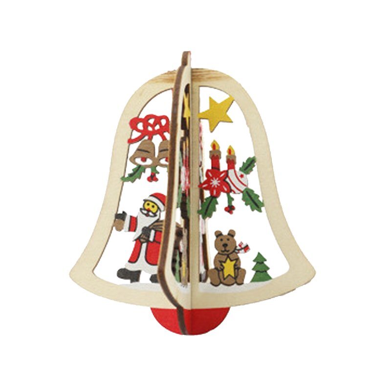 【C10824】送料無料 3D オーナメント ベル デコレーション オブジェ ウッド 鐘 木製 サンタさん サンタ クマ 吊り下げ装飾 置物 雑貨 イベ