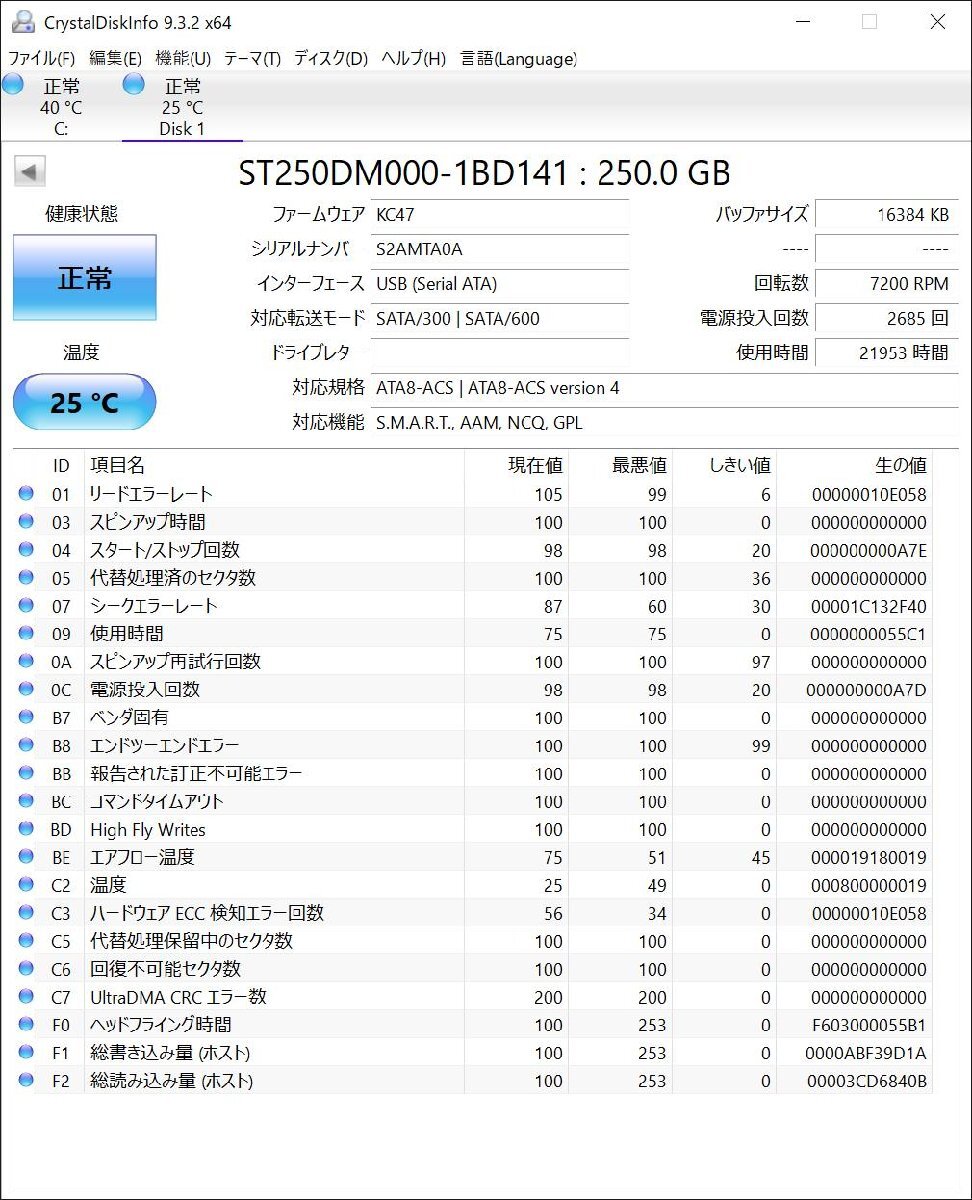 KN5742 【中古品】Seagate ST250DM000 HDD 250GB 4個セット