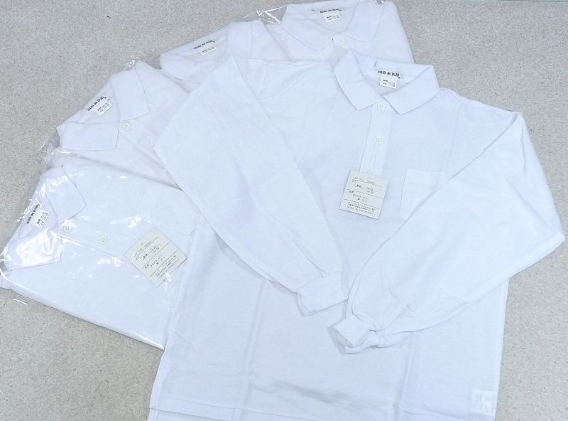 80PS04▲【未開封】BUD IN BUD・長袖白ポロシャツ・150サイズ 5着セット・学生服 キッズ 学校 通学 児童 スクール 子供